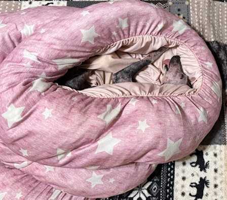 ホイホイに入って横向きに寝ているレイア・・・口開いてる