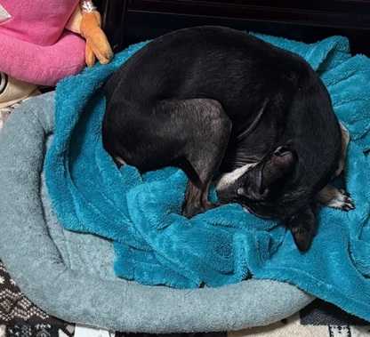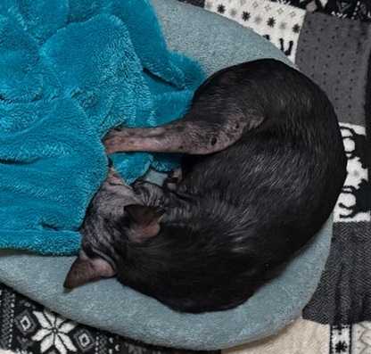 昨日レイアが寝ていたベッドに、マースが寝ていました