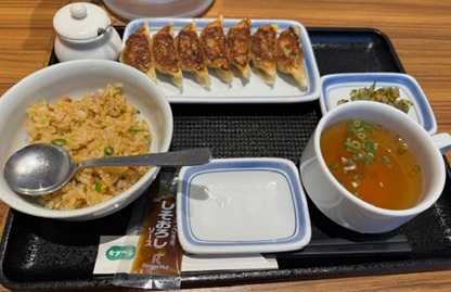 私が注文したのは~餃子7個の半チャーハン定食で720円。