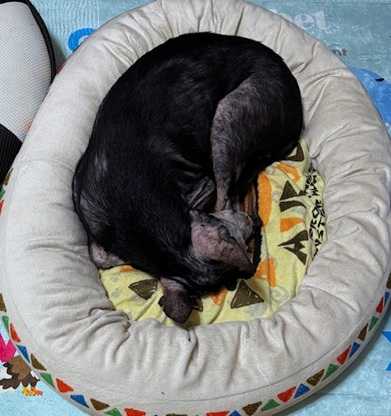 丸まって寝ている・・・と思ったら目が開いていたマース