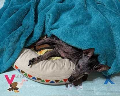 レイアは・・・毛布に潜って、だらけた格好でいました