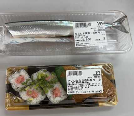 昼食は「まぐろたたき巻き・いなり」にしました。