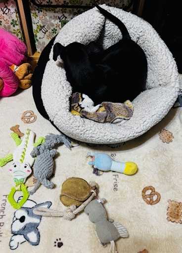 にほんブログ村にほんブログ村今日は昼休みにマミープラスまで行きましたもうお節料理が色々と並んでいますね~。我が家は、ダニエルが蒲鉾と伊達巻が好きなので紅白2本の蒲鉾と伊達巻がセットになった物となるとだけ、とりあえず買っておきました賞味期限は1月5日だったので~明日のクリスマスイブ・・・丸ごとの鶏さんとかレッグとか色々売られていますがカレー味がついた鶏もも肉の切り身があったのでこれで良いやぁ~と買っておきました帰り道にファミチキ買って夕食に食べたので2日続けて鶏肉ですけど、ダニエルは鶏肉好きなので文句は言いませんケーキもスポンジを食べたい気分じゃないのでミルクレープをデコってケーキっぽくしようと考えました。以上、イブはそんな感じで~ワン達は、冷凍されたワン用のいただき物で手作りマドレーヌがあるので、それをデコる予定です。ドラくんの反応が楽しみですねドラくん、食べたことがないものは警戒します。キャベツは食べるようになりましたがキュウリはイマイチみたい。果物は好きになったようで、夢中で食べます。今のところ、ワンコ用の柿の種がご褒美おやつになっています。今日はあごのせペットベッドをひっくり返して遊んでいました。元に戻したら~下に頭を突っ込んで寝てた同化せずにお顔が見えてるレイアです人気ブログランキングへ"人気ブログランキング"にポチ!っとブログ王ランキングにも参加中にほんブログ村いつも応援ありがとうございます!コメントのお返事ができないことが多いですが訪問コメントにてお返事とさせていただきますことお許しくださいm(_ _)m●●●●格安価格! ノミダニ対策は、これ一つで問題なし♪●●●●