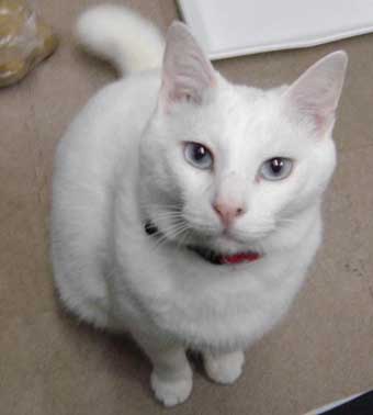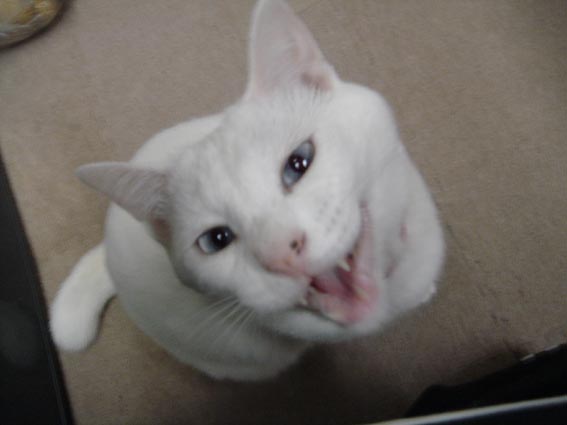 美夢たんさんからお誘いをいただきまして、仲間に加わらせていただきたいと思います。ポンポンです。よろしくです。白猫さん、たくさんいらっしゃいますねー。ポンポンとそっくりな子もいるけど、みんな個性があって面白いです。僕のこの目を見て!目的を果たすまでは目で訴え続けるよ。それから巻き舌も得意なの!