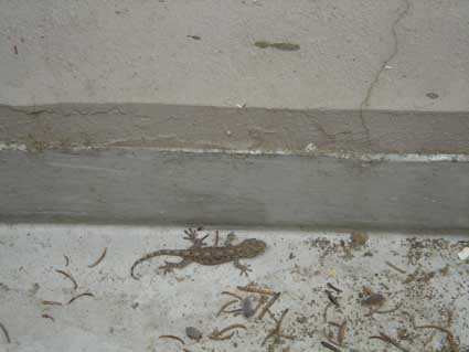 我が家のベランダには私が料理のために使うハーブが沢山ある。プランターなので、そんなに良くないけど、毎日葉っぱが育つのを見るのが楽しい。今日は、スーパーで買ったコ葱の根っこを植えようと思ってプランターを移動させた。そのプランターがあった場所で、何かがうごめいた。よーく見ると、それは「トカゲだった。」ありえなーい、ウチは4階なのに~!ありえなくも無いか、、。あの手と足だったら登ってこられる、、確かに。。。恐る恐る観察してみると、普段見るようなカナチョロとはちょっと違うような、、、。頭が少し大きいんだよね。GECKOみたい。。。あれがウチのベランダに住み着いているのは心穏やかじゃないけどゲッコみたいに害虫を食べてくれるんならいて欲しいな。