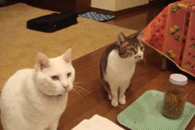 昨日は義母夫婦を連れて浅草方面に行ってきました。浅草寺は前回来日したときに連れて行ったので今回は水上バスに乗りました。竹芝から隅田川を浅草に向かう途中に夫の勤めている会社があり、義母はそれを見て喜んでいました。そして「会社の中を見学したい」と!もちろん却下されましたけどね。浅草に着いたら今度は人力車です。英語の話せるガイドさんを探して二人を乗せました。残念ながら途中で雨が降ってしまい、人力車のあとは帰路につきました。もう浅草寺も見たくないそうで、そのまま帰りました。今回気がついたのは、彼らのスタミナがだいぶ落ちたこと。年をとるので当たり前のことなんだけど、やっぱりせっかく日本にいるのだからもう少し行動的にしてもいいのでは、、と思ってしまう私たちです。どこかに出かけないと、1日中家のなかでゴロゴロしてるだけなのでとっても勿体無いと思ってしまいます。さてこちらのカップルは、、やっぱりボクたちもゴロゴロニャン