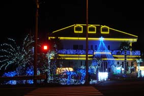 夫が正月休みに入って3日目です。近場だけどいろいろ出かけて回ったので今日は年末のお買い物だけにしました。大晦日のスーパーは激混みするので、朝の9時から義母夫婦を連れてお買い物に行ってきました。義母をスーパーに連れて行くと大変です。彼女にとって珍しいものが沢山あるのでいちいち足を止めては質問攻めです。今日は生ラーメンをフランスに持ち帰りたいと騒ぎ始めて説得するのに一苦労ですよ夜はいつものごとくアペリティフから始まり新年を迎えるまでソワレをしました。ところで1週間ほど前から我がマンションの近所にすごいイルミネーションが出現したのですよ。そこは住宅リフォーム会社なのですが、外観は南欧風の家で、どんな意図があるのか夜になるとピカピカ光り始めました。ハデ好きな義母は、そのライトアップに大喜びして夜になると見物に出かけます。不思議な建物です。 もちろん夜は営業していません。中庭に入ると綺麗です。