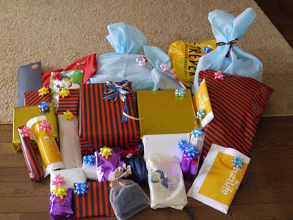 震災から1週間経ちました。未だに大きな余震が続き、計画停電で暗い夜を過ごしたり私たちの生活もだいぶ変わってしまいました。昨日、幕張のスーパーに行ったらいつもの駐車場が閉鎖されて、4階の駐車場へ。エレベーターもエスカレーターも動いてません。そこから1階の店舗まで階段で降りて、買い物後も4階まで階段上りました。疲れた~。1年前に出来たばかりのスーパーなのに、震災で壊れるなんて。そして今日は夫の誕生日。毎年恒例の20個の誕生日プレゼントを集めるのは大変でした。これ全部、家中に隠します。夫はヒントを見ながら探し回ります。プレゼント20個と言ってもチョコとか靴下とかが殆どで、メインは2つくらい。今回自分でも不思議なんだけど、なぜか防災グッズばかりを集めてたんですね。こんな大きな地震がくるとは思わない震災前に。メインは携帯用ワンセグ防水DVD、そして頭につけて使えるLEDライト。他にキャンドルとかも揃えてました。虫の知らせだったのかな?その後はいつもの洋食屋さんでディナー。こんな時にいかがなものかと思ったけれど、スーパーで思ったように食材が手に入らなかったので洋食屋さんを予約してしまいました。この日の洋食屋さんは、すごく混んでました。お客さんはみんな同じ考え。食べるものが手に入らないので来たそうです。でも食事の途中で静岡県震度5の地震発生。家で留守番してるポン茶郎が心配でやっぱり来たことを後悔しました。義母は相変わらず煩く連絡してきます。原発のこととか 大きな地震が来るたびに「どんな気持ちですか?怖いですか?」と聞いてきます。今ではちょっとの揺れが来たくらいでは何とも思わなくなりました。こんな自分が怖くなります。危機感がなくなっているようで。もっと気を引き締めないといけませんね。