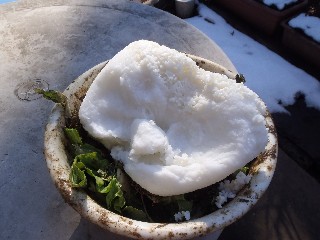 昨日の夜、大雨の後、しーんとしたから外の様子を見たら雪が降ってきました^^;あれよあれよという間に雪は降り積もり、ダチョウたちの上に張った防鳥ネットが大ピンチに!Σ(@o@;)夜の12時近くまで雪下ろししていましたが、一人では大変で寒さで体の芯まで冷えて半分しか降ろせず参ってしまいました(-_-;早く雪が止んでくれたので助かりましたが、今日も雪降ったらもう防鳥ネットがもたないかも(T_T;)日中、残りの雪を落としましたが大分凍ってて全部は網から落ちません!頼むから今日は降らないでくれ~!(>_