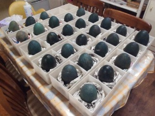 先日、エミューを飼っている群馬にいるある会社会長さんから依頼を受けて、エミュー卵の委託孵化を受けました。前回、去年は3羽孵化しました。今回はそれ以上孵化してほしい^^;少なくても全滅だけは避けたい(^_^;(滝汗