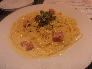 たんと農園の名物!カルボナーラをつけめんでいただく「和風カルボナーラdeつけ麺」和風だしで作ったカルボナーラのソースにめんを絡めてわさびを添えていただくととても美味!(^o^)/お店イチオシのパスタです!カルボナーラつけめん ¥900(税別