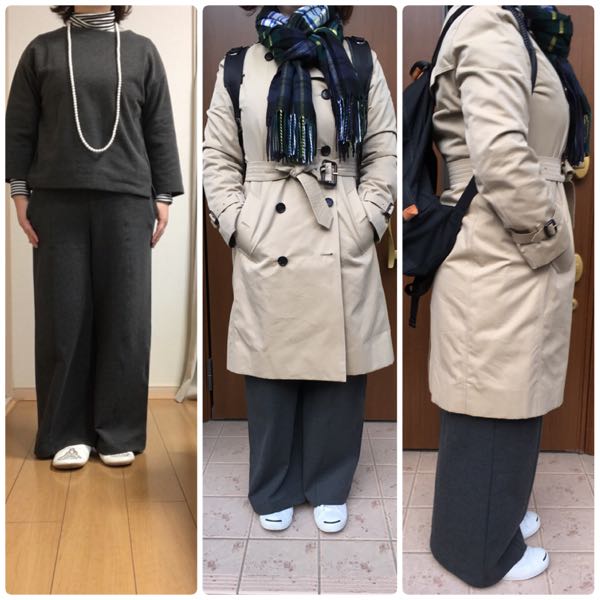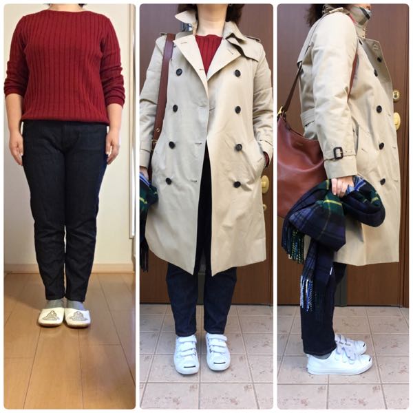 こんばんは、Odeboo☆です。今日は午後から息子さんのサッカーの間に、定例のマネーセミナーへ行って来ました。そんな日のコーデアウター:Burberry(UK14)ニット:UNIQLO(3XL)デニム:UNIQLO(28)バッグ:COACH靴:CONVERSEストール:JHONSTONS今日はとても暖かい日でした。駅まで20分歩く事と、帰りは車で迎えに来てもらい、車で色々と買い出しに行く事を考えて、GUの中綿ベストの予定でした。いつものように着画を撮ったら…とてももっさい感じに!!旦那さんを玄関で待たせたまま、大慌てでトレンチに着替えました。アイテム1つで、こんなにも変わるのね…トレンチの方がIラインが出るから少しスッキリ見えるのかな?ニットの下はヒートテックのタンクトップを着ましたが、駅まで歩いたら暑かった!とても12月とは思えない暖かさ。でも日陰との寒暖差があるので、2時間半のセミナーで冷えたら困るので膝掛け用にストールを持って行きましたよ〜。やっぱり夜は冷えるし、持って行って正解。これこらイベントも多いので、体調管理に気をつけないと!ジャックパーセル converse スニーカー シューズ メンズ レディース/ジャックパーセルV-3レザー/革 レザー ベルクロ 限定モデル カジュアル/JackP-V3-LEATHER/ホワイト ブラック/では、良い終末を!⬇︎応援してください‼︎⬇︎ おデブにも愛の手をにほんブログ村ファッション(大きいサイズ) ブログランキングへ
