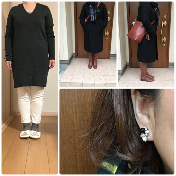 メリークリスマス!Odeboo☆です。イヴは自宅でクリパ…って言っても、ケーキとケンタッキーを食べるだけです。あとは通常の土曜で、息子さんは1日習い事デー。そして私は歯医者でした。そんな日のコーデ。アウター:UNIQLO×ルメール(L)ニット:UNIQLO(XXL)デニム:UNIQLO(30)バッグ:COACH靴:セシールピアス:anemoneアウターの画像のみ使い回しです。いつもより遅い時間に撮ったので、変な光が入り込んでしまい、使えませんでした。なのでバッグはCOACHでした。ここ数日は手作りピアスでしたが、今日は大好きなanemoneで買ったもの。もうかれこれ3〜4年前のものです。大きいサイズの人気ブロガーさんとお揃いでした。最近はストールを巻くので、ぶら下がり系では無いものを良く着けています。anemoneはデザインとコスパが良く、シーズン毎にチエックしています。JUCY ROCKもよく買ってたんですが、高い割に壊れるのが早かったです。ヘアアクセやバッグも充実しているし、anemoneはオススメです!楽天でも取り扱ってます。このピアスかわいいです。Ane Mone【アネモネ】 小粒パールとキラキラボールのバックキャッチピアス価格:2550円(税込、送料別) (2016/12/24時点)ニットワンピはサイズアップしたのは失敗だったみたい。寒くてデニムと合わせることが多いので、丈がもう少し短い方がバランスがいいと思います。膝から下が短いので、ブーツを履いた方が少しでもヒールがある分、スタイルアップしますね。それから画像では分かりにくいですが、身頃と袖の編み目が違うんです。大きくても、だらし無い感じはしないので、そこそこキレイ目に着られると思います。値下げしているので、オススメですよ〜。今日は歯医者と買い物という地元コーデ。その割にはうまくまとまってるんじゃ無いかな〜と自己満足で終わります!!⬇︎応援してください‼︎⬇︎ おデブにも愛の手をにほんブログ村ファッション(大きいサイズ) ブログランキングへ