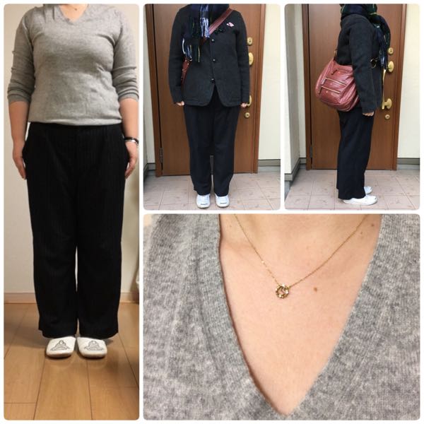 こんばんは、Odeboo☆です。今日も寒い!でも、冬はこうでなくちゃ!!って感じです。プレ更年期(ただのデブ説あり)も手伝って、結構寒いの平気だし!女子の日初日なのでこんな格好。アウター:DANTON(40)ニット:UNIQLO(XL)パンツ:UNIQLO(XL)バッグ:TODS靴:CONVERSEストール:JHONSTONSネックレス:AHKAHパンツは昨シーズン購入したUNIQLOのウールワイドパンツです。画像では全く見えないけれど、ピンストライプです。気に入りすぎてヨレヨレかな?ウールだし、裏地も付いてるので暖かい。今年もたくさんコーデに登場する事でしょう!ニットも4〜5年もののUNIQLOカシミヤニット。当時は営業だったので、スーツ用に買いました。確かに今年のものより、厚手な気がします。Vの開き具合もちょうど良いです。首元が淋しいので、久しぶりにネックレスを。(お目汚しすみません…)息子さんが1歳になった記念に、ご褒美として自分で買いました!小さい小さいダイヤと息子さんのイニシャルです。そんな息子さんも日曜日に8歳です。感慨に耽っていて、ネックレスの事を思い出しました。最近放置気味だったので、今月はたくさん付けようっと!結果、シックな色味で大人カジュアルに仕上がりました!明日、息子さんの個人懇談があるのですが、こんな感じにすれば良かったとちょっと後悔です。AHKAH(アーカー)ソルティアラウンドネックレス(WG)楽天では新品の取り扱いはあまりないみたいです⬇︎応援してください‼︎⬇︎ おデブにも愛の手をにほんブログ村ファッション(大きいサイズ) ブログランキングへ