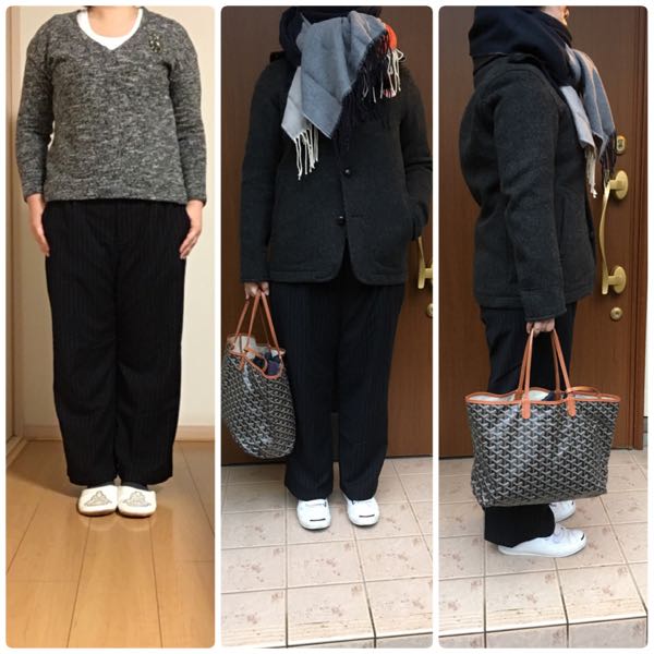 こんばんは、Odeboo☆です。まだ火曜日なのに、とーっても疲れてる。そんな日に限って、バタバタと忙しい日でした。…で、コーデ。アウター:DANTON(40)ニット:ZARA(XL)去年パンツ:UNIQLO(XL)去年バッグ:GOYARD靴:CONVERSEストール:UNIQLO 去年ニットは去年のZARA画像ではイマイチ分かりづらいけど、胸元にビジューが付いてます。胸元が開いているので白Tで抜け感(?)こなれ感(?)を出したかったんだけれど、バランスが難しい…パンツはUNIQLOのウールワイドパンツ。好きすぎて、もけもけ…イロチ買いしておけば良かったー今期は見かけなかった気がする…トップスをコンパクトにして、色味はシックに…と大人のカジュアルにしたつもり!ジョンストンズのストール使いすぎなので、UNIQLOを引っ張り出してきました。オレンジがポイントの2wayストールです。慌ててて、なんか巻き方おかしいけどね、ほんと可愛いし、手触りも良いしお気に入りです。もう少し薄くて、長いと扱いやすいんだけどな〜絶対に年明け追加してやるゾ!!【エントリーでポイント10倍!】【2万円以上で1000円OFF!】Johnstons ジョンストンズ カシミア チェックストール Cashmere Tartans Stole WA56 WA000056 タータンチェック 英国 プレッピー マフラー 大判ストール 【今なら送料無料!!】旦那さんにも買ってあげるつもり!オッさんに柄物はありかな?違う意味で悩んでしまう。ジョンストンズ カシミアマフラー ストール WA000016 JOHNSTONS Woven Scarves 100% Cashmere Woven Scarf 送料無料今日はUNIQLOのでポチったものが届く予定。また紹介させてくださいね〜⬇︎応援してください‼︎⬇︎ おデブにも愛の手をにほんブログ村ファッション(大きいサイズ) ブログランキングへ
