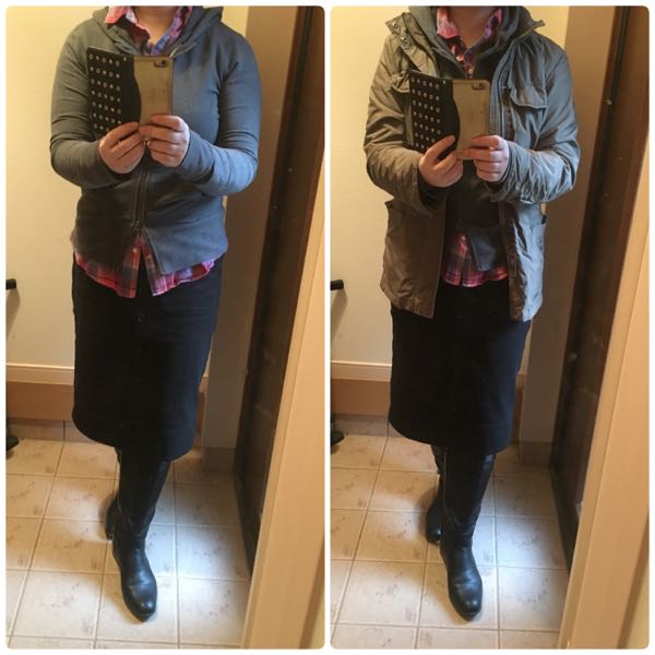 こんばんは、Odeboo☆です! 天気はイマイチだけれど、 暖かい朝でした。 コーデはこんな感じ アウター:UNIQLO (men's S) パーカー:UNIQLO +J( L) シャツ:UNIQLO(XL) スカート:UNIQLO U(76) 靴:Cecile@楽天 バッグは写ってませんが ここ数日はTODSの斜め掛けバッグです。 資格試験のテキストを入れるのにちょうど良いから 代わり映えせず… 今日は本当に暖かく、日中は12〜13℃超えの予報だったので UNIQLOのメンズのマウンパを。 ナイロン地で内側はフリースなので、 結構暖かいです。 脱いでも軽いので優秀です。 LサイズのパーカーにXLのフランネルシャツを合わせたからか、 シャツがヨレヨレになってます。 パーカーからチラ見せする分量がなかなか定まらず… 全く上手に着れませんでした。 フランネルシャツは大草さんが着ていて 人気だったカラー。 久しぶりにピンクが着たくて引っ張り出しました。 カーキ、グレー、ピンク、ブラックと色合いは良かったんだけどなー。 ブーツはコレ 【送料無料】筒周りが選べる ジョッキー ロング ブーツ RA-935 【筒周り超ゆったりタイプ】(セシール cecile レディース ブーツ ブラウン キャメル グレージュ ダークブラウン ブラック 筒周りが選べる ふつう ゆったり 超ゆったり ベルト飾り 大きいサイズ) 一応、ストールもしてました。 【FINAL SALE】Johnstons ジョンストンズ 【WA000056】 カシミア 大判 ストール (無地) (7色展開) 無地のotterでした。 とうとう購入! J&M Davidson Baby Mia Blackです。 コチラはお安いけれど、ロゴが旧タイプ J&M DAVIDSON/ジェイ&エムデヴィッドソンBABY MIA ベイビーミアハンドバッグ(ショルダー付) 1356 7266 私は新しいもの好きなので、 外ポケットの上にロゴがくる 新仕様のものを購入しましたよ〜 J&M Davidson Baby Mia BLACK / NIGHT (2017AW) ブランドに直接質問して、 ロゴ以外は全く同じと回答をもらいました。 ブランドのオンラインショップでも 両方販売しているので、お安く購入するのも良いですよね。 応援してくださいランキングに参加しています。愛のクリックを頂けると励みになります。 にほんブログ村大きいサイズランキング