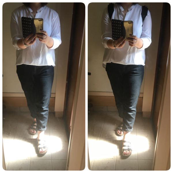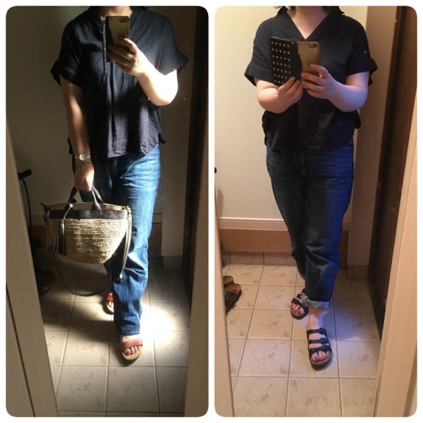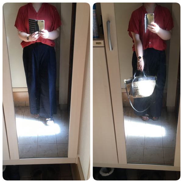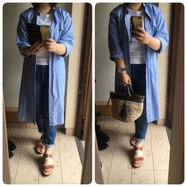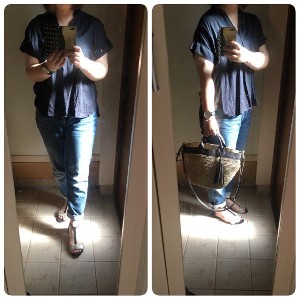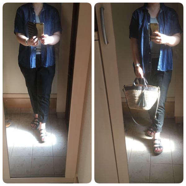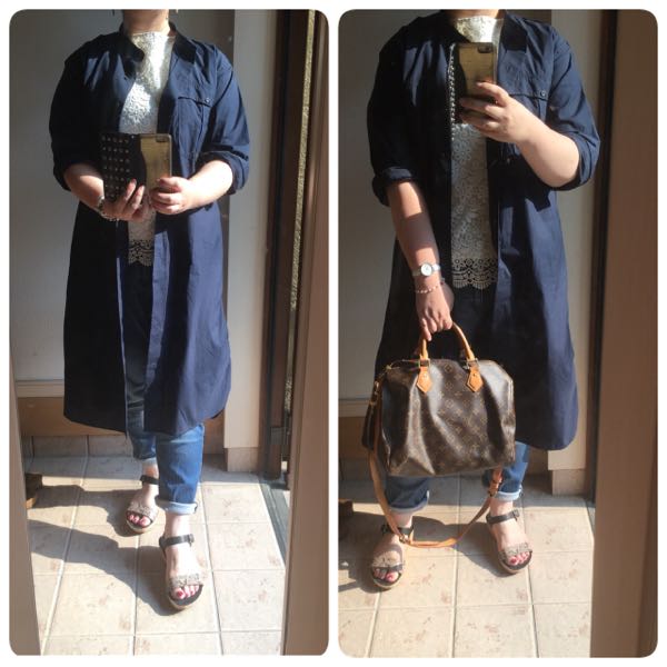 こんばんは、Odeboo☆です! 早速ですが、今日のコーデ。 先に言っておきますが、 大失敗なのです。 南国の働かないおじさんみたいになってます。 (右の写真は夕方歯医者に行く前に撮りました。) シャツ:グローバルワーク(L) デニム:GU(XXL) バッグ:ヴィオラドーロ 靴:フィットフロップ &ビルケンシュトック 着画撮ってヤバさに気付き、 辛うじて裾をロールアップしてみたんですけどね。 元々長め丈な上に、ゆったりデニムなので ロールアップもモサっとなってしまってます。 時間があれば着替えたかったくらい。 単品だとなかなか使い勝手がいいのですが、 この組み合わせは完全にNGだったようです。 今日のアイテム 【SALE/16%OFF】(W)CRスキッパーシャツ/SS グローバルワーク シャツ/ブラウス【RBA_S】【RBA_E】 私のは去年のネイビーです。 軽い素材で涼しいですよー。 シワも目立ちにくいと思います。 ボン バック ストラップ サンダル キャラメル レディース 女性用 靴 【 FITFLOP BON II BACK STRAP SANDALS CARAMEL 】 めっちゃ歩きやすい、フィットフロップ 。 昨日ポチった色違いも、早く届けば良いなぁ。 【3こ1】VIOLAd'ORO(ヴィオラドーロ)ラフィア×カウレザータッセル 2WAYかごトートバッグ v-8086-tr 去年購入したヴィオラドーロ。 去年はだいぶ出し惜しみしたのに、 今年はガンガン使ってます。 濃い目のかごバッグも欲しいところ。 冬にも使えるように、レザー使いのものが欲しいな VIOLAd'ORO(ヴィオラドーロ)アラログ×レザー パール使い かごバッグ バスケットバッグ・V-8193-2781801【レディース】【■■】 【ポイント10倍】【あす楽】ヴィオラドーロ VIOLAd'ORO ショルダーバッグ レディース 2way 本革 かご ラタン リングハンドル v-8177 応援してくださいランキングに参加しています。愛のクリックを頂けると励みになります にほんブログ村 大きいサイズランキング
