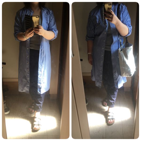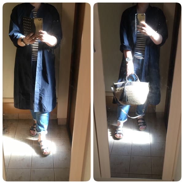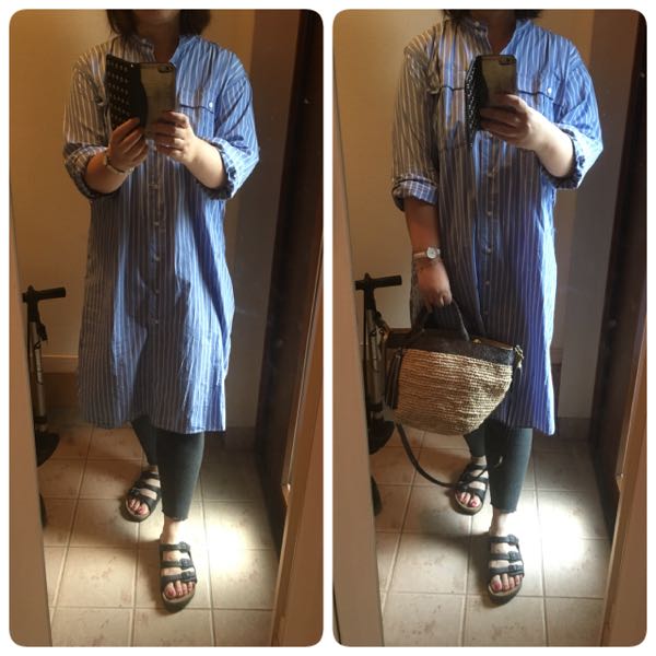こんばんは、Odeboo☆です! 今日は気温・湿度共に高かったOSAKA。 なんだか分からないけど、 やけにしんどい1日でした。 そんな日のコーデ シャツワンピ:UNIQLO(L) TEE:GAP(L) デニム:UNIQLO(32) バッグ:ヴィオラドーロ 靴:ビルケンシュトック 土曜日にワゴンから発掘したシャツワンピ。 昨日着ていたのと色違い。 当たり前だけど、 ブルーのストライプの方が涼しげだよね? 心なしかネイビーの方が 生地がしっかりしている気がしないでもない。 なので今日は暑かったわー。 でもこちらのネイビーは秋まで着られるね。 両方とも値下げ品だったので、 2枚買っても定価よりお安いわー。 ゆったりとしたサイズなので、 おデブさんにもオススメなアイテム。 ワゴンでぜひ掘り出してみて下さいね! 今日のアイテム 【3こ1】VIOLAd'ORO(ヴィオラドーロ)ラフィア×カウレザータッセル 2WAYかごトートバッグ v-8086-tr ビルケンシュトック スポーツサンダル 【BIRKENSTOCK/ビルケンシュトック】Florida(フロリダ)ベルトストラップサンダル●メール便不可●(おしゃれ カジュアル サンダル ベルト ストラップ レディースサンダル ビルケン シューズ 靴 レディース スポサン) 応援してくださいランキングに参加しています。愛のクリックを頂けると励みになります にほんブログ村 大きいサイズランキング