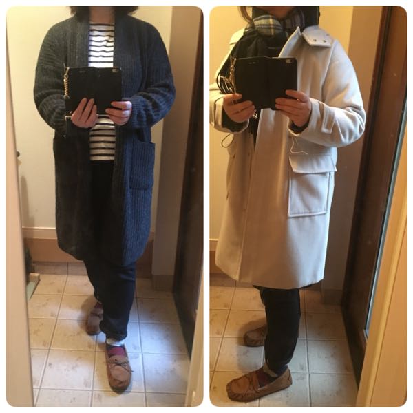 こんばんは、Odeboo☆です! 今日から寒くなると言う予報だったので 覚悟して防寒したら、 電車内でのぼせそうな程 暑くなってしまったコーデ。 コート:GU(L)new in カーデ:UNIQLO(L) ロンT:セントジェームス ×J crew パンツ:UNIQLO(32) 靴:GU ストール:ジョンストンズ やっと投入できたGUのコート。 春先に着られる薄い色のコートが欲しかったんです。 ウエストを少し絞ると、 シルエットがキレイです。 かなり大きめのサイズなので ワンサイズ下げてLを購入しました。 嬉しかったのはアームホールが太いので、 UNIQLOのこのニットコートが余裕で着られること! ワンサイズ下げて購入したのですが、 それでも大きくて。 手持ちのコートだと、腕がパツパツでした。 そうなると肩凝るしね。 画像のように、インナーダウンを仕込んで、 コートとして着るのが正解なんでしょうけれども、 今日はカーデとして着用しました。 "コート"と謳っているだけあって、 普通のカーデより暖かいと思います。 おかげで、満員電車の中で逆上せそうになりましたよ。 だいぶまとまった感じがしたのですが、 靴のチョイスを間違えた気がするー! 楽天の感謝祭??が終わりましたね。 本をメインに購入しました。 ファッションアイテムはこれだけ。 ずっとお気に入りに入れてたやつです。 ジェリービーンズ JELLY BEANS ポインテッドバレエシューズ 103-1125 (ヘビ) 本はこんな感じ。 講座で一緒だった京大生オススメの本。 日本国紀 [ 百田尚樹 ] お世話になっている藤川理論の 藤川先生の新作 うつ消しごはん タンパク質と鉄をたっぷり摂れば心と体はみるみる軽くなる! [ 藤川徳美 ] うつじゃない人にもオススメです! 息子さんの ナイトサファリのサバイバル(2) 生き残り作戦 (かがくるBOOK 科学漫画サバイバルシリーズ) [ ゴムドリco. ] あっ、コレも買いました。 お勉強用です。 【送料無料】 私の声はあなたとともに ミルトン・エリクソンのいやしのストーリー / シドニー・ローゼン 【本】 冬休みは読書三昧になりそうです。 応援してくださいランキングに参加しています。愛のクリックを頂けると励みになります にほんブログ村 大きいサイズランキング