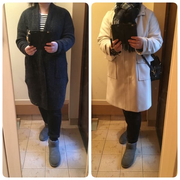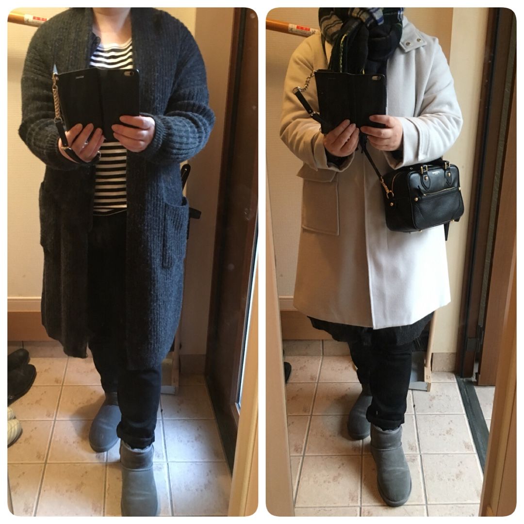 こんばんは、Odeboo☆です! 昨日は午後から咳が出て、 寒気と頭痛でヤバそうでしたが、 ガッツリ寝たら復活!! コーデはこんな感じ。 コート:GU(L) ニット:ZARA(L) パンツ:UNIQLO(76) バッグ:J&M Davidson 靴:コンバース 昨日の記事で絶賛したコートです。 アームホールが太めなので、 ゆるニットの上に着ても窮屈でないのが嬉しい! そして今朝は旦那さんに褒められました。 でももう3〜4回着ているのに、 今まで気がつかなかったのか…とビックリやわ。 そして昨日は久しぶりにGUでお買い物をしましたー。 この2つ! パッと見、違いが分からないので、 両方ポチりました。 1つだけ手元に置いて、返品予定です。 またサイズ感など着レポしますねー! 応援してくださいランキングに参加しています。愛のクリックを頂けると励みになります にほんブログ村 大きいサイズランキング