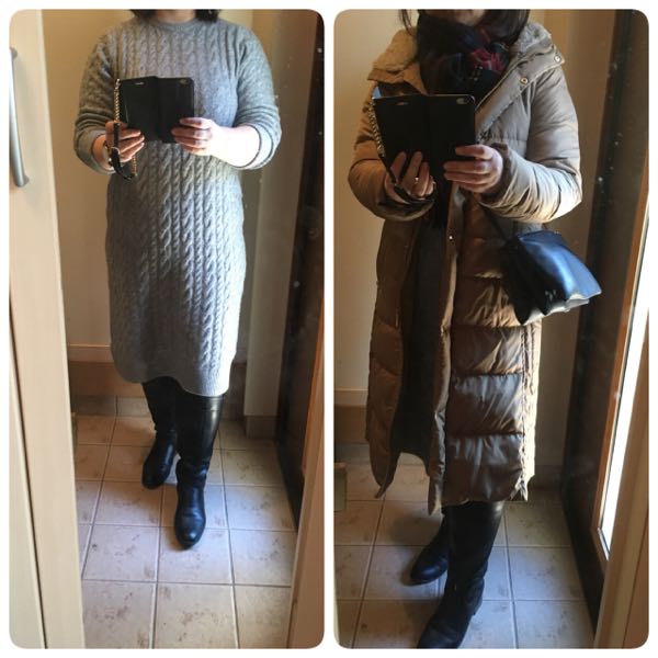 こんばんは、Odeboo☆です! 今朝は風が強くて、冷え込んでました。 こんな日は(脱いだら邪魔になるけど)、 ロングダウンのコートにしました。 コート:フェリシモ(LL) ニットワンピ:GU(XL) パンツ:楽天 ブーツ:セシール バッグ:カリマー ストール:ジョンストンズ ニットワンピは今季購入のGUです。 大き目との事ですが、ぴちぴちも嫌なのでいつものサイズを。 ちょっと丈が長いかなぁ。 パンツが全く見えませんが、コチラを履いてます。 大きいサイズ レディース パンツ | 裏起毛あり・なし のび〜る ストレッチ ツイル 魔法の 美脚レギパン _ ボトムス レギンス レギンスパンツ レギパン すっきり 美脚 LL 3L 4L 5L 6L あったか 暖かい 裏起毛 裏シャギー 起毛 冬 冬物 冬服 ちなみにホワイトです。 ロングブーツにインするのにちょうど良い。 昨季までヘビロテしていたロングブーツ。 今年はまだ2回目かな? 会社に履いていくのは初めてかも! 【バーゲン】大きいサイズ ジョッキーロングブーツ(筒周りが選べる)(22.5cm 23cm 23.5cm 24cm 25cm 25.5cm 26cm) RA-935 (cecile セシール) めっちゃお安くなってます。 ブラウンが使いやすいです。 履き潰したのでもう一足買いたいな。 今日のアイテム ジョンストンズ カシミアストール 大判ストール 188×72cm カシミア100% JOHNSTONS 人気カラーブラック スチュアート CASHMERE PLAIN STOLES WA000056 Stewart Gordon Mackenzie Baloch GreyMacpherson White Silver Granite Chacoal Black [全14色] カリマー リュック VT デイパックF VT day pack F karr-015 【highball】 にほんブログ村 ファッションランキング