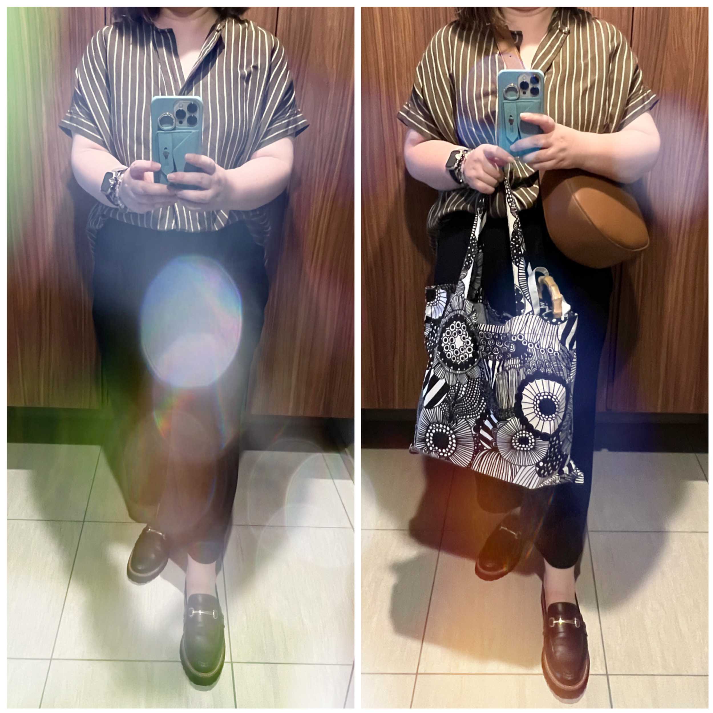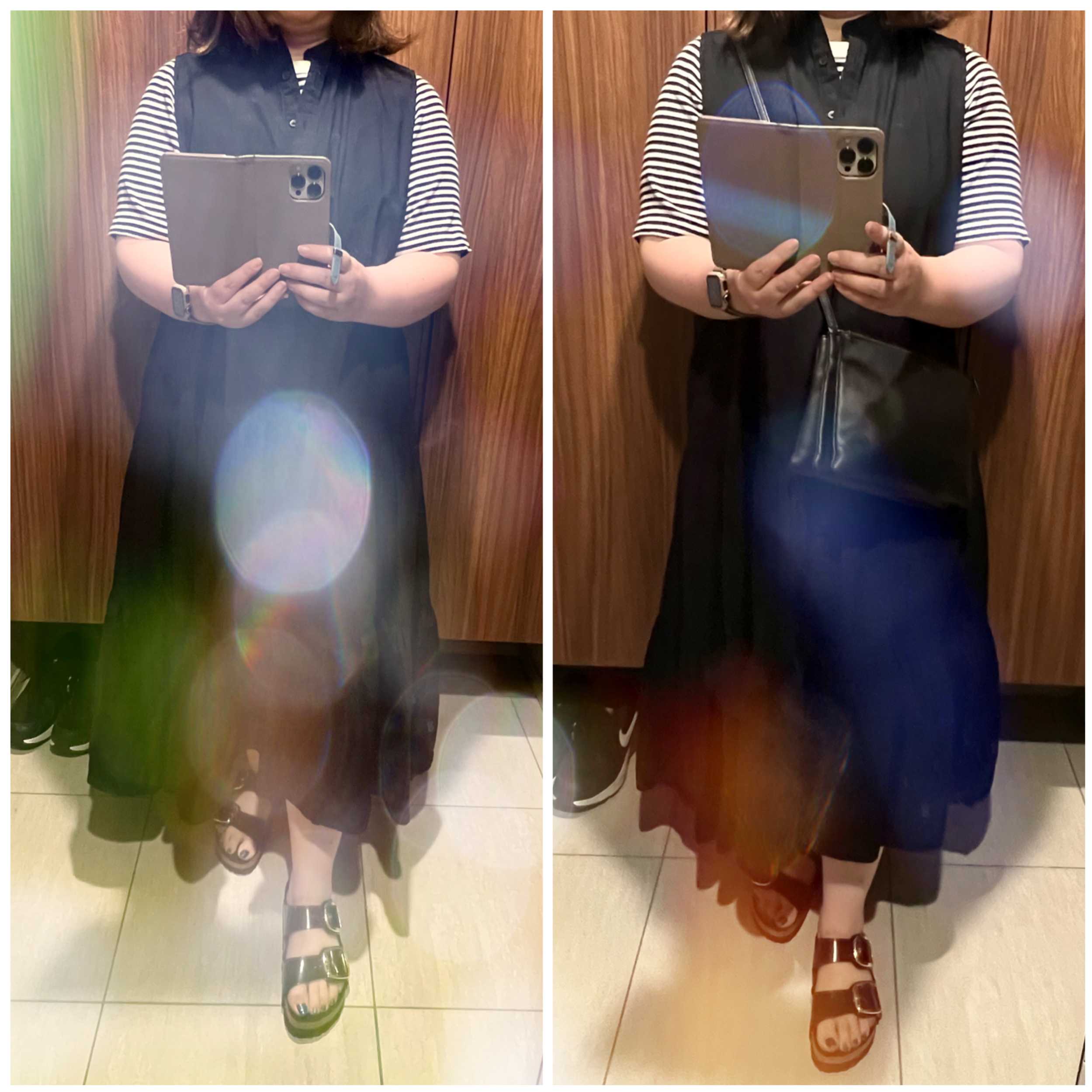 こんばんは、Kacoです!(はじめましての方はコチラ☆も見てね)今日は台風のせいで、暑さが若干ましだったOSAKA日差しがないだけで、体力温存できるねwそんな日のコーデニット:Uniqloスカート:Uniqloバッグ:Celine & Style on Bag靴:Nike土曜日にしたインナーカラーまだ誰にも気づかれてないwww4時間もかかったし、いつものカラーよりお高かったのになぁ。まぁ、気長に待つか。本日の使用アイテム週末から引き続きトリオバッグ。出勤時にはお弁当やら色々とあるので、サブバッグも。人気のバッグ風プチプラだから、気兼ねなく使えて良い。撥水加工なので雨の日にも使えるしね。本家よりポケットは使いやすそう。本家はこちらね。多分、ナイロン地が良いんだと思う。靴はエアリフトでした。バランスが取りやすいスニーカー。この前ちょっとお高いバッグを買ったのに、評判につられてお迎えしちゃった!画像は高そうに見えますが、ハッキリ言う、高見えはしません!!インスタとかブログとか、みんな写真を撮るのが上手なんだと思う。黒いバッグはたくさん持っているのし、黒ってお値段が分かりやすいので、ブラウンにしました。高見えしないけど、庶民派BBAにはちょうど良い。それこそ雨の日も使えるしねー。早速明日から使ってみようと思ってます。昨日は感動した〜尊すぎるずっと見ていたいwwwさて、本日の気になるもの〜このサロペ可愛い。にほんブログ村大きいサイズランキング