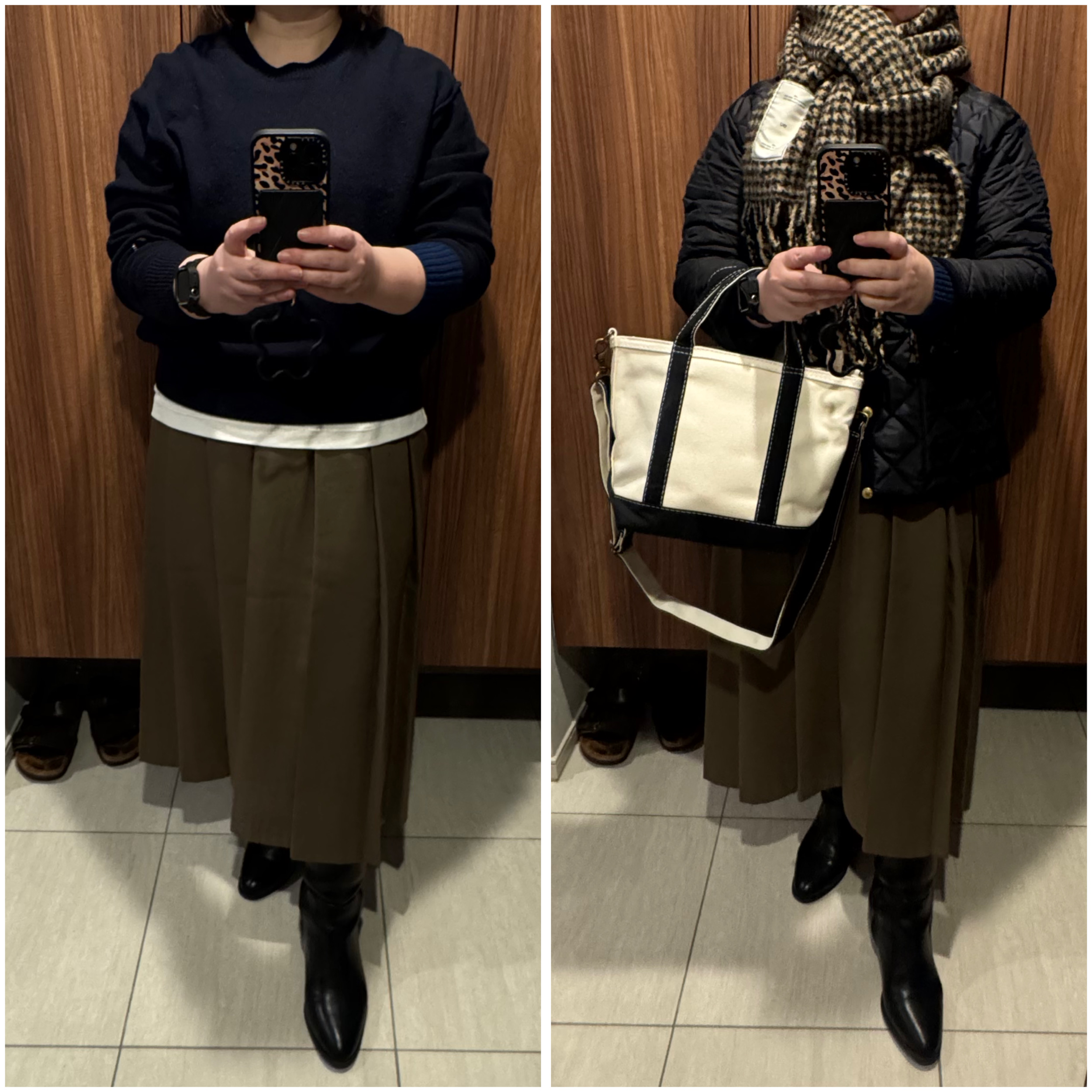 9連休後の3連勤一番しんどいな。昨日はしっかり寝たのに、くまができてるんだけどー!今日は久しぶりにスカートを履きました。こんな格好アウター:Traditional Weatherwearニット:Uniqlo x Anya Hindmarch TEE: Uniqloスカート:GUバッグ:LL bean靴:楽天 ストール:GU x rokh極暖ヒートテックのレギンスを仕込んでるから、めっちゃ暖かいよ。使用アイテム今日はショート丈のキルティングコートにしました。私のは去年のNollysの別注で、取り外せるフード付き。今季はずっと取り外して着ています。ニットは2023年のアニヤコラボ。ラムウールのニットです。今季はメリノウールを買ったので、今着るにはちょっと寒いな。(めっちゃお値下げされてるよー)楽天ならお値下げされてるこれがいいな。スカートはGUです。しわにならなくて良い。これが似てる! しかもプチプライスバッグはLL beanのスモールサイズのトートiPadminiも入って、私の手持ちバッグに最適サイズ。現在、お値下げ中ですよー。足元はロングブーツにしました。今日は眠いのでこの辺で👋<新しいサイトを作りました!>アラフィフ向けのお話をしています。バナーから遊びに来てね👋にほんブログ村大きいサイズランキング