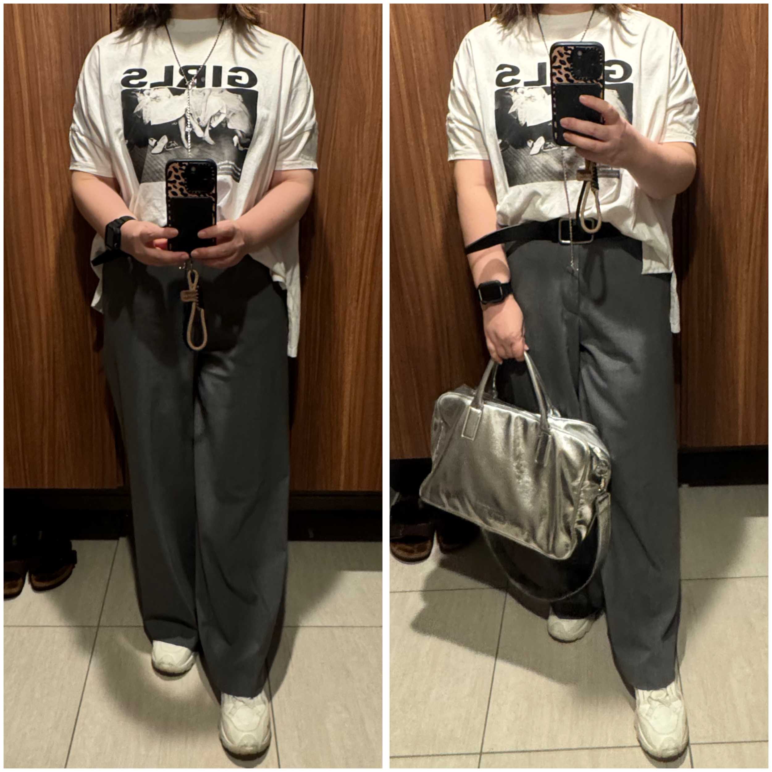 昨日はなかなか寝付けず、今日は調子がイマイチだわー。筋肉痛で身体中痛いし。今日は早く寝られるといいな。今日はこのTEEが着たくて、こんな感じになりました。TEE: Spick & Spanパンツ:Uniqloバッグ:Adam et Rope靴:NIKEBBAなのでTEE1枚で出かけるのは抵抗があるんだけど、暑すぎてこのまま出かけました。本日の使用アイテム(販売終了のものは似たようなのを載せておきますね)TEEは何回か再販されているもの。今なら在庫がありますよ。今買っても、まだまだ着られると思う。息子さんに、おばさんなのにGIRLって受けるって言われたけど・・・💦パンツはユニクロのタックが入ってないパンツ。若い子の真似して買ったんだけど・・・私が履くと、おじさんのスラックスよータック入りが幅を利かせているので、楽天では見つけられず。これは似てるけど、タック入り。でも、私はノータックの方が腰回りがすっきりして見えるのよね・・・バッグは去年買った、初代のギンギラ銀バッグ足元は久しぶりにNIKEのスニーカーでした。久しぶりにアラフィフブログをアップしました!バナーから遊びに来てねー!本日の推し🩵今日はTdVの大千穐楽でした。5月から本当にお疲れ様。10月からまた舞台があるけど、チケットがない・・・😭本日の氣になるもの~最近ちょっと氣になるブランド。お高いので買ったことはない。セールになってるものから、良いなと思うものを選んでみたよー。アメブロで期間限定のダイエットブログを公開中。バナーから飛んできてね。<新しいサイトを作りました!>アラフィフ向けのお話をしています。バナーから遊びに来てね👋にほんブログ村大きいサイズランキング