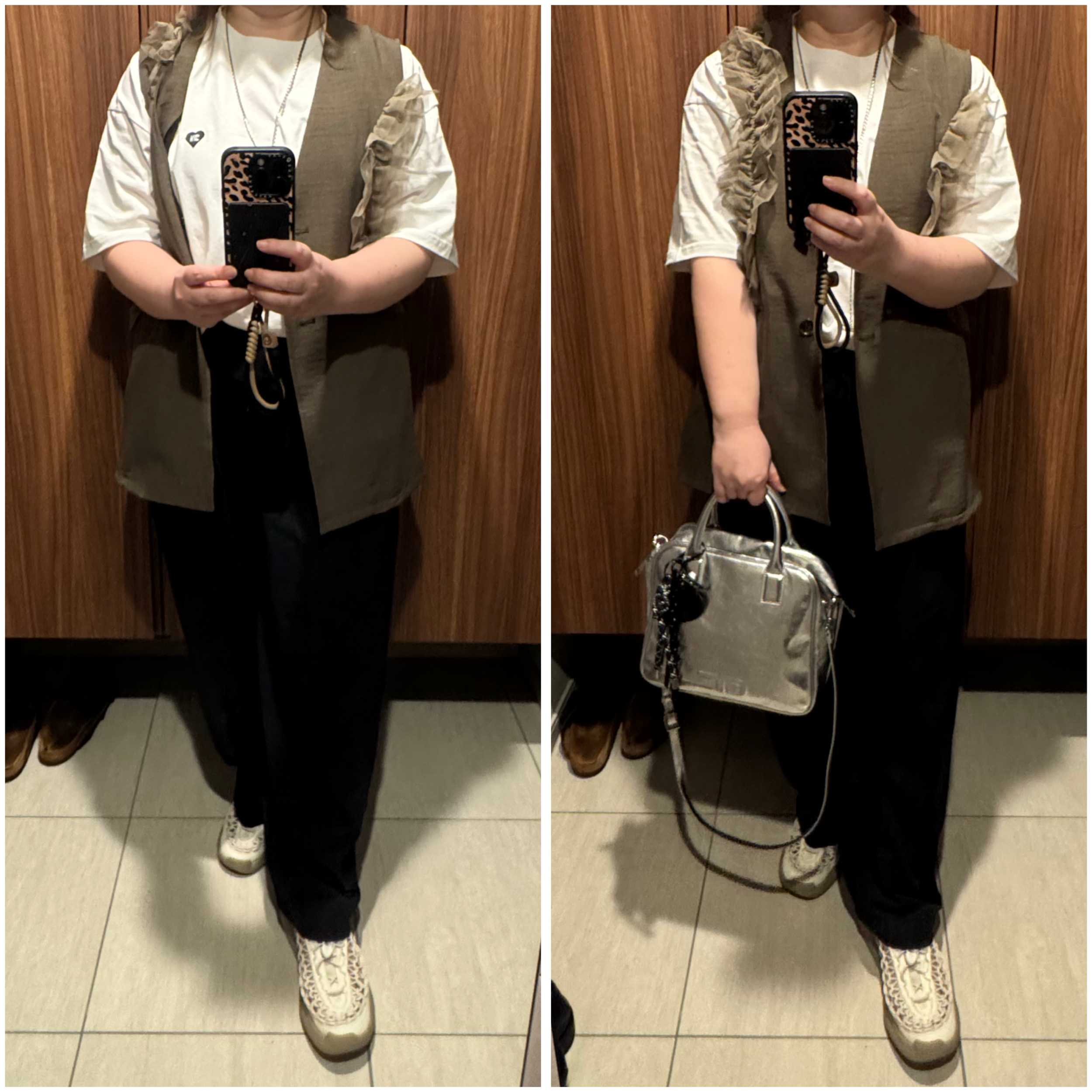 じめっとしたOSAKA曇り空なのにジメジメ・・・梅雨明けたんだよね?今日はパーソナルトレーニングの日なので、すぐに動ける格好で。ユニクロの口コミが良いパンツを初投入してみたよ。こんな感じJINくんのロゴをチラ見せ〜ジレ:LEPSIMTEE: JINくんのツアーT NEW!パンツ:Uniqlo NEW!バッグ:Adam et Rope靴:KEENジレを脱ぐとね、昭和の体育教師だったYO!ジレは店舗で衝動買いしたんだけど、どうやっても似合わない。多分、サイズが合ってないんだと思うわー。悩んだもう一つの方にすればよかったな。(これもジッパーがしまらなかったんだけどね💦)そして、Tシャツはまさかの推しのツアーTこの写真じゃTEE分からないね😅超シンプルなのよー。ソロコンサート前に下ろしてしまったw白の無地のTシャツが着たい氣分だったんだよねー。コンサートまでに汚さないように氣を付けるわ。パンツはブロガーさんとかインフルエンサーが絶賛してたやつ。体型なんだろうねぇ、私には似合わなかったわ。まさに体育教師、ネイビーだったら完全にそうだと思うwただ、運動するには良い生地だと思ったよ。やっぱり楽天で売ってるこれ欲しいな。靴とバッグは届いてから、毎日のように使ってます。本日の推し❤️💜💚🩵🎽🩷💛🤍寺西くんが最推しなんですが、箱推しでもあります。タイプロ見て良かったなーと思うのはオリジナルメンバーもとても魅力的だったこと。しょーりかわいいなぁ❤️本日の氣になるもの~あぁ、痩せてればライブにちょうど良かったのに!アメブロにて期間限定でダイエットブログを綴っています。よかったら遊びに来てね↓↓<新しいサイトを作りました!>アラフィフ向けのお話をしています。バナーから遊びに来てね👋にほんブログ村大きいサイズランキング