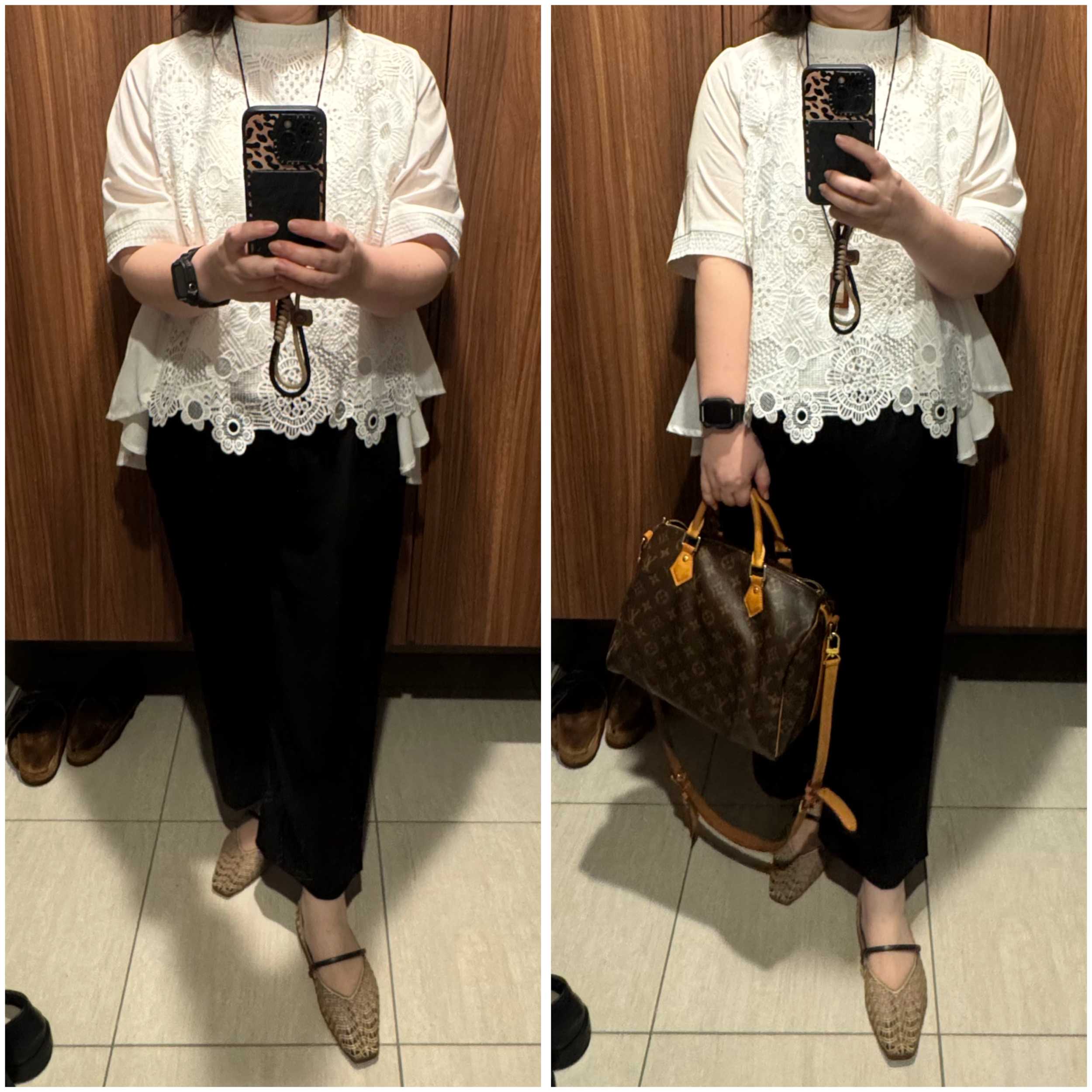 木曜日は起きるのがしんどいわぁ。昨晩、パーソナルトレーニングもしてるから、余計なんだと思うけどね。だから明日は有休取って休むことにした。推しに会うために色々と準備をするつもりよ。今日はこんな格好でした。ブラウス:地元の雑貨屋さんパンツ:Uniqloバッグ:LV靴:Le Talon去年1100円で買った訳アリブラウスが大活躍です。イマドキではないですが、褒められる率高い。まぁ大抵は私より年上の方からばかりですが・・・。・・・で、先々週その雑貨屋さんでセールをしていて、全く同じものが売っていたので買っちゃいました!今回は訳アリ品ではなかったので、1600円。ヘビロテしすぎたのでスペアとし買っちゃった!全然似てないけど、型番で検索したら出てきたやつwこれも可愛い。その他の使用アイテム(販売終了のものは似たようなのを載せておきますね)パンツは年代物のユニクロこういう丈はもう流行ってないかもね。だけど、学校行事系に使いやすくて重宝してるよ。バッグは久しぶりにヴィトン足元は今季購入したルタロンのパンプスでした。これが似てる。本日の推し💜JINくんのソロコンのチケットを発券したよ。VIP席外れたから、いい席ではないことは覚悟していたけど遠いな・・・私の10倍の望遠鏡で見えるか不安自分で買った安いオートフォーカス友達に誕生日プレゼントで買ってもらったやつ原くんの舞台の時に両方使ってみたんだけど、値段は2倍以上違うけど、見え方はほぼ一緒。安い方がオートフォーカスな分、焦点がすぐに合うので使いやすかったな。でも「防振」タイプが欲しいと思った。お高いのよね・・・ボーナス月とはいえ、無理ー。本日の氣になるもの~アメブロで期間限定のダイエットブログを書いています。バナーから飛んできてね↓↓↓<新しいサイトを作りました!>アラフィフ向けのお話をしています。バナーから遊びに来てね👋にほんブログ村大きいサイズランキング
