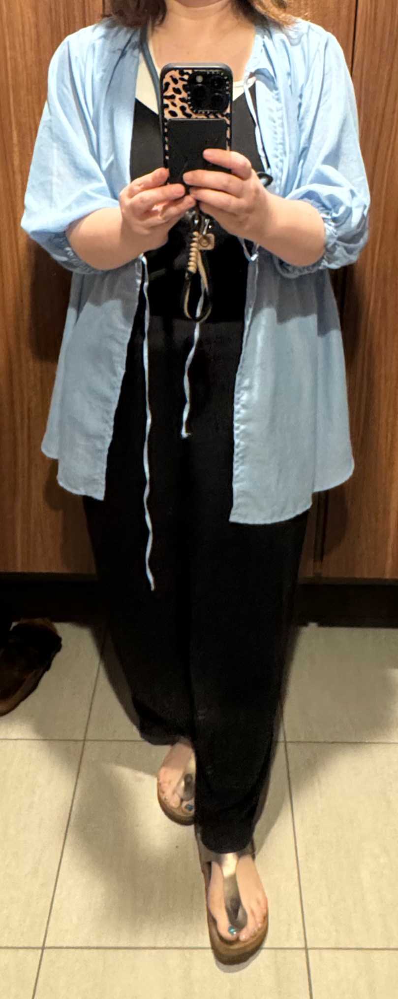 今日は急遽お休みにしました。昨日の昼まで悩んでたんだけど、結局お休みすることに。これから毎週土日が忙しくなるので、ちょっとゆっくりしたかったのと、土日できない分の家事を前倒しでしておきたかったんだ。・・・なのに、急に歯が痛くなって歯医者に行くことにもなった。しかも15時ってめっちゃ暑かったよ💦こんな格好で。歯医者と買い出しに行ってきたYOブラウス:LEPSIMサロペ:Uniqlo靴:Birkenstock帽子:楽天近所なのでスマホとお財布だけで行っちゃった!画像にはないけど、キャップも被ったよ。使用アイテム(販売終了のものは似たようなのを載せておきますね)メンカラのブラウス。明日のミュージカルに着て行こうと思ったけど、友達にコーデを相談したら、これじゃなかったw明日はメンカラ無しでの登場になりそうです。サロペは年代物のユニクロ。これが似てるし、お値段もお手頃よん。久しぶりのサンダルちょうど4年前に買いました。6600円で買ったから、ほぼ2倍のお値段になってるYO!今日の推し🩵ミーグリの当落発表だったんですよ・・・まぁ、分かってましたけどね。本来あまり公表しないけど、32枚で当たったと言ってる方がいました。私、6枚・・・無理よね?当たったら当たったで、困る自分もいたのが事実。それが反映された結果になったんだろうな。明日、ミュージカル俳優の寺西くんをしっかりと目に焼き付けてこようと思ってます。本日の氣になるもの〜かっこいいー!と思ったけど、値段が無理だわ💦今日はしっかり肌ケアして、明日に臨むわーって・・・そんな良席ではないんだけどね。S席だからそこそこは見えるだろうけどね。楽しんできまーす👋<新しいサイトを作りました!>アラフィフ向けのお話をしています。バナーから遊びに来てね👋にほんブログ村大きいサイズランキング