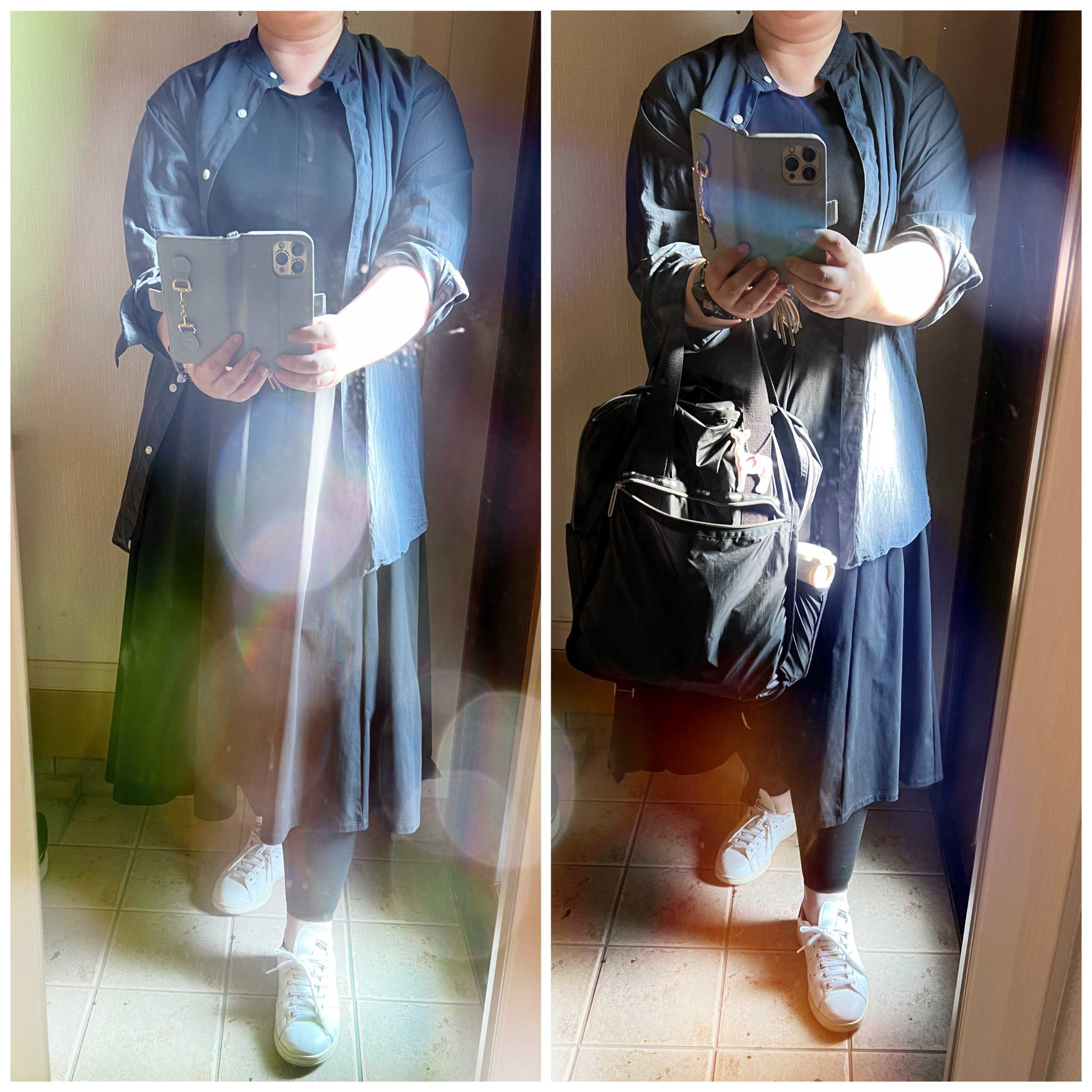 こんばんは、Kacoです!(はじめましての方はコチラ☆も見てね! 個人プロフィールにリンクしてます。)外は風があって過ごしやすいのに、室内がもわもわと湿気が多い気候でした。ほんとうに何を着ていいのか分からなーい😱遊び疲れて身体が怠いのでこんな格好で行ってきましたよ。(よく見るとなんだか怖い画像になってるよ)シャツ:UniqloリブT:Uniqloパンツ:Uniqlo New in!バッグ:LesportSac靴:Converseシャツは去年のジャージー素材のもの。なのでだいぶ厚手で暖かいのです。中に半袖のリブTを着ていきましたが、ほぼ会社ではシャツを脱いで半袖で過ごしました。本当はシャツをたすき掛けしたかったのですが、ドルマンスリーブと私の体の大きさがあいまって、結べなかった😅パンツは先週購入したもの。バギーパンツの黒です。少々アップデートされていますが、ほぼサイズが一緒だったので、手持ちのネイビーのバギーパンツと同じサイズを選んだら、ウエストだけ緩くて失敗したー。途中で下がってくるのにイライラして以前YouTubeで見た対処法をしてみたよ。1番目のベルト通しに1度通してからボタンを留めるの。でもさ、ベルト通しがしっかりしすぎてて、ボタン閉めるのが大変だったわ。ずり落ちてくるよりマシだから、頑張って留めたけどね。本日の気になるもの〜可愛いなー。けど、今年はこんなに暑いと冬物の売れ行きはどうなんだろ?ちゃんと冬くるよね??心配になっちゃうわwもう一声お安くなったら、即買いなんだけどな。ダウンもしくは中綿ベストを新調すればよかったと後悔。この冬ははこれだけで過ごせそうよね?金欠なのに買ってしまいそうになるので、気をつけないとね。<新しいサイト作りました>バナーをクリックしてね〜にほんブログ村大きいサイズランキング
