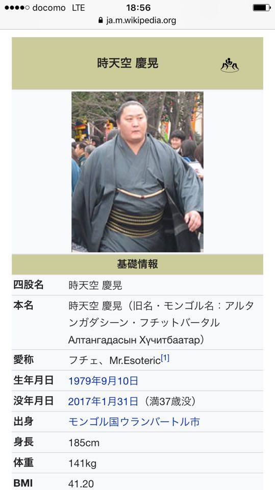 大相撲の元小結時天空慶晃さんが悪性リンパ腫のため今日深夜に亡くなりました。まだ37歳という若さでした。初土俵後に序の口、序二段、三段目で3場所連続優勝を果たし、2004年7月場所に初土俵から所要12場所の史上最速タイ(当時)で新入幕を果たしました。掛け技を得意とし2005年11月場所には技能賞を受賞しました。2015年に悪性リンパ腫が発覚し長期休場を続けていましたが、復帰を断念し昨年9月に引退を表明しました。抗がん剤治療の影響で髪が抜け落ち、断髪式ができずに坊主頭で引退会見を行いました。引退後は間垣親方として後進の育成に当たっていましたが、体調不良で自宅療養をしていたとの事です。そして今日、37歳で天国へ旅立ちました。あの豪快な掛け技は他の力士には真似できなかったと思います。横綱大関戦に勝利した事もあり内容のいい相撲も多かったと思います。ご冥福をお祈りします。