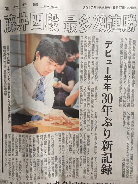 藤井聡太四段が昨日の竜王戦決勝トーナメントで増田康宏四段を破り、公式戦の新記録となる29連勝を達成しました。28連勝は将棋界で不滅の大記録とされていましたが、中学生の棋士がデビューから半年で大記録を打ち立てました。今日は朝から対戦した事のあり現役最高齢記録を持つ加藤一二三(ひふみん)がTVに出まくりでしたね。藤井四段は角換わり戦法を得意としています。私も祖父から将棋を教わった時にもこの戦法を習いました。祖父は将棋番組をよく見ており将棋を指していました。私は棒銀戦法から学び始め早繰り銀、腰掛け銀などの戦法を学び祖父や友人と対局する際にもこの戦法を使っていました。藤井四段も幼少のころから将棋をやっていたそうで、子供将棋大会での優勝経験も何度かあるそうです。藤井四段は竜王戦決勝トーナメントでこのまま勝ち進めば渡辺明竜王に挑戦する事になります。これからの益々のご活躍を心より願っています。