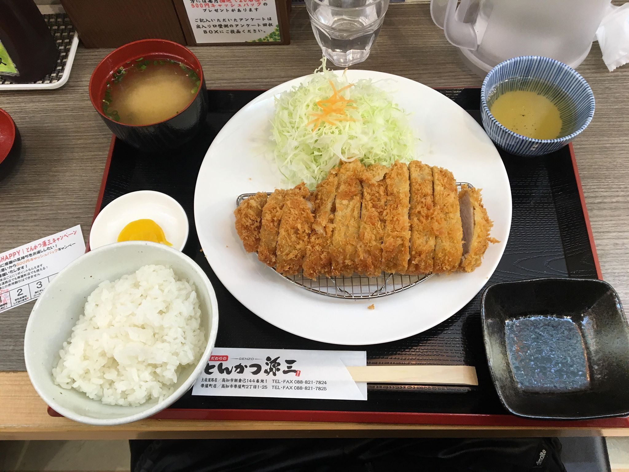 帯屋町に今年オープンしたとんかつ屋、とんかつ源三へ行って来ました。入店してすぐに食券を購入するシステムです。私は三元豚のロースかつ定食を注文しました。カツもボリューム満点で、サクサクとしていました。その場でSNSに投稿するとデザートのサービスやスタンプのサービスもあります。さらに、ご飯、キャベツ、味噌汁はおかわり自由というサービスもついています。メニューはまだたくさんあるのでリピート確定です。
