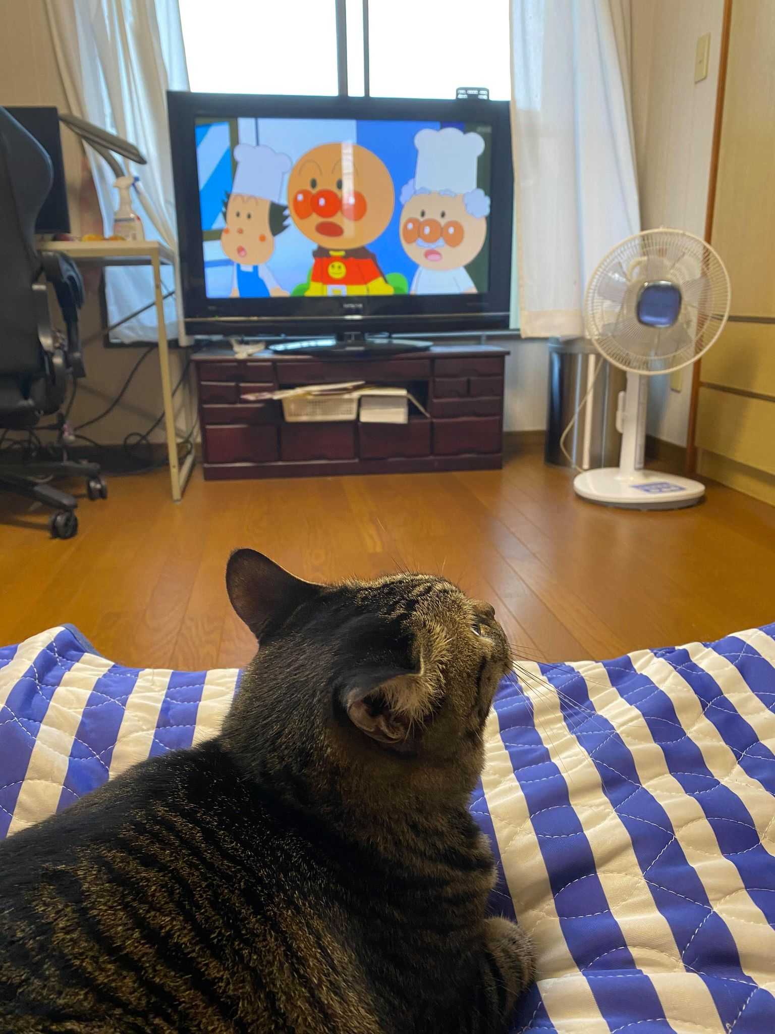 土佐ぽん太です。体調は快方に向かっていますが、大事を取り今日も自宅で過ごしていました。我が家の愛猫、ごまはアンパンマンが気に入ったみたいで、私がアンパンマンを見ていると一緒に見るようになりました。この前は病院受診で見る事ができなかったので、録画していました。ごまもアンパンマンを真剣に見ており、顔が汚れたり濡れたりすると、目がうるうるしてますよ。おいおい、肝心な時に限ってテレビから目線を逸らしやがったな(笑)。どういう性格をしてるんでしょうね。ごまも人間の趣味に興味を持つようになってきました。