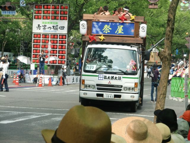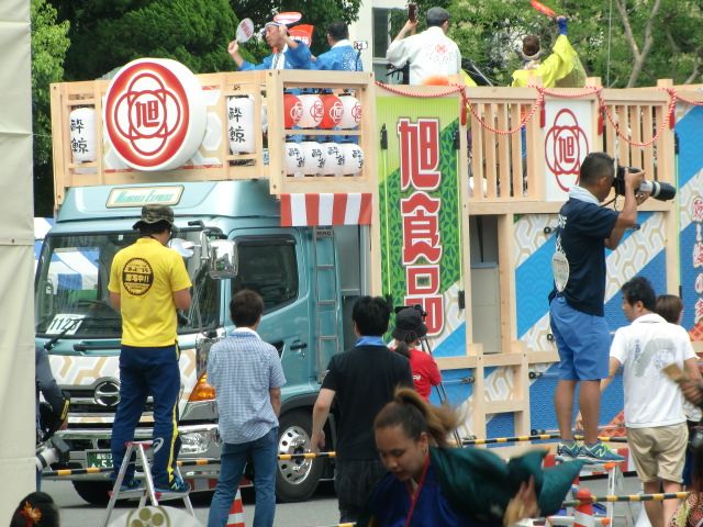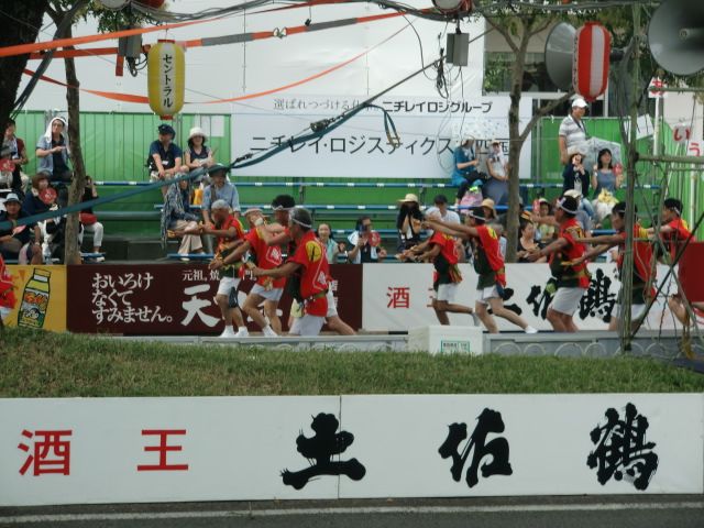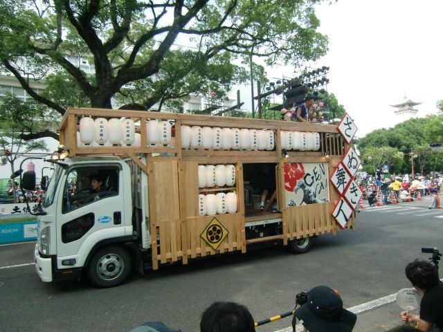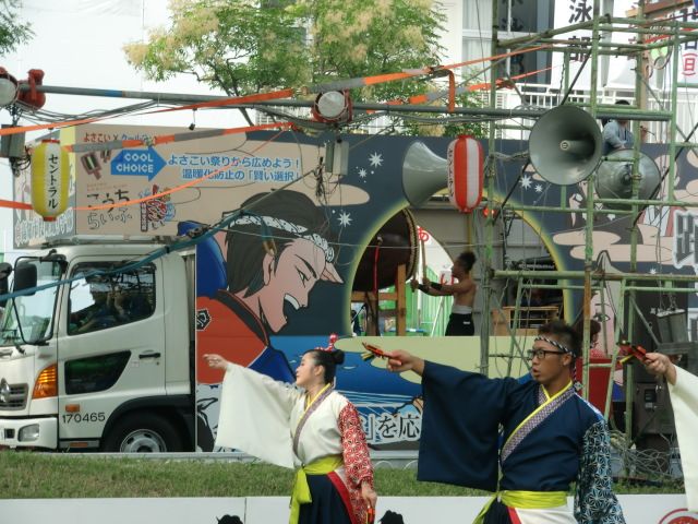 分かりづらいとは思いますが、今年も三山ひろしさんが踊ってます。隣は高知市長。