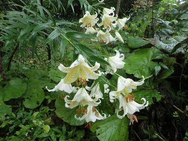 山百合が咲いてきました。雨で重くなった花が垂れ下がって来ています。根を食べる為に乱獲された事と、山の環境が変わって来た事でその個体数を著しく減少していて、遅馳せながらこれを保護して増殖させている最中です。鬼百合と同じく自然増殖では時間が掛かるので播種して増やそうと思っています。樹勢が今ひとつ弱いので、花芽を摘んで力を蓄えているプリンセス・アイコさんですが、花芽が次から次へと旺盛に付いて来る健気な様子にそろそろ花を咲かせる事にしようか迷っている所です。私の友人が持ってきてくれた実生の栗の苗ですが、4年目ぐらいになったのでしょうか?昨年から実を付け始めましたが、昨年は樹勢を確保するために実を落としましたが、今年は実の様子を見るために大きくしてみます。自家用程度のレベルであれば難儀して接木をする必要が無く、栗の苗木が作れるのですが結果は如何にです。桃栗三年と言われる早い時期に実を付ける栗だからこそ出来る技?に期待をしております。駄目なら接木用に育成している山栗に接木をして増やします。県内某地区で蜜蜂仙人と呼ばれている方にお話を聞きに行きましたが、その途中にある名水の噴出の様子です。癖の無い良い水でしたが、水にかけては私のところも負けていない環境にあり、噴出量は我が家のものが上位のようでした。ちょっと自信を付けた所です。写真は三箇所から出ている内の一つに成ります。当ミツバチの会会長(手前右側)と蜂仙人のKさんです。個人のプライバシーの為に、画像を加工させて頂いた失礼をお詫びいたします。この辺り一帯山に囲まれていて、山蜂といわれている日本蜜蜂の飼育には適した良い環境の所でした。何を隠そうここらは秋田のマタギのふるさとの一つで、日本で最後の鷹匠さんのいた所でもあるのです。マタギは山からの恵みで生活を成り立たせていたと言われ、獣から得られる物は勿論、薬草、山菜等と蜜蜂なども飼っていたと思われるので、マタギと山蜂(日本蜜蜂)との関係も調べて見ようと興味を持ったところでも有ります。マタギ即ち地元の恩恵で暮らす人々は、其処の自然を壊すことは自らの首を絞めることにつながり、山ノ神信仰と供に必要最小限の恵みを頂き、先の山百合なども消滅の危機に及ぶような乱獲はする事は無かったと思われます。そうした自然を冒涜する欲に駆られた乱獲と言う行動は、収穫物の減少で身に返って来る事を「バチが当る」と称していた事でも分かると思います。今里山から消えた山菜に「ウド」がありますが、原因は乱獲と知識の無いままに、同じ株から出てくるものを、次から次へと山に入ってくる人が採ってしまい、最後のは力の尽きた「ウド」は終には芽を出せなくなってしまい消滅してしまっている現実があります。採集した人は知識が無いから乱獲した憶えはありませんから事は深刻?になります。同じようなことが世の中には起こっていて、自らの行動が知らず知らずの内に社会に与える影響を知らないでいる事が多いようにも思います。