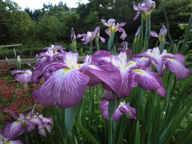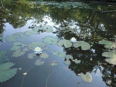池のほとりのアヤメです。400坪野池に突き出て咲くオオムラサキツツジです。樹齢は、我が家に来て40年ぐらいですから、その時には既に大苗だったので50歳くらいはなっているものと思われます。日光消毒の為に水を落としておいた5t池の排水パイプに産卵したモリアオガエルの卵隗を、取って金網に吊るして孵化に備えました。野池周りの小道のそばに咲く蘭の仲間で名前が不明なのですが、こうして保護してこの場所は4株になりました。アマドコロの花です。我が家の所々に有りますが、如何いう訳か此処のが一番小さいのです。もしかしたら変種?山葡萄の実も付きました。我が家の池と森の境の桑の木に這わせて保護育成しているものです。此処は通風が悪いらしく、雨が多いと大半が病気で無くなってしまいます。もっと高い所に這わせて、通風を図れば美味しい山葡萄のワインが楽しめます。酒税法違反ですが、販売はしていない自家用なので、これは酒ではなく健康維持の薬になります・・・・・エゴノキの花も今年は豊作のようです。久しぶりの厳しい冬は、むしろ彼らには過ごし易かったようです。白い布団に包まれて冬を越したからなのでしょうか。ガマズミ科ガマズミ属カンボクの花が満開になりました。木の実は毒があるそうです。花が咲いたら紹介しますが、イチロベエゴロシという物騒な名前のドクウツギという花も咲きます。猛毒だそうですが、言われなくても解る名前です。150坪水温調整池と60坪野池の間の様子です。湿地と高木による日光の遮断と池に挟まれて、尚且つ森の境目にあたるここは夏でも涼しくて爽やかなところです。この先が山野草のコーナーになっています。そんな野池の周りを上の畑から見た様子です。今日はうだるような暑い日になりました。先日植え替えた小菊の苗もしおれています。