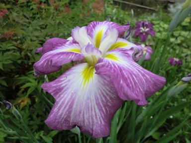 辛うじて咲いたアイコですが花芽を全部カットしました。肥料をやってやり直しです。花芽を取ってやり直しです。名前分からなくなってしまったのですが、株分けで増やしたものが咲いてきました。アスチルベの仲間でしょうか?花も名前が分からないと色々と不都合ですね。第4の菖蒲、白いのが咲いてきました。これも品種の銘があるのでしょうが、名無しでは無銘の刀剣みたいですね。価値半減ですが綺麗な菖蒲です。菖蒲園みたいに纏まって咲くものも綺麗ですが、品種ごとに入り混じりながらこうして咲いているのも良いですね。すっとした立ち姿に浮き上がるように凛と咲く花、花毎に見せる味わいも各々に異なり、静の菖蒲此処にありというところでしょうか。日本には花を観賞するために入れたと言われているナスに実が付いていますがまだ可哀想な大きさです。でも生り癖も大事なので徹果しながら大きくしていきたいと思います。徹果した小さな実を今朝頂きましたが美味しかったですよ。