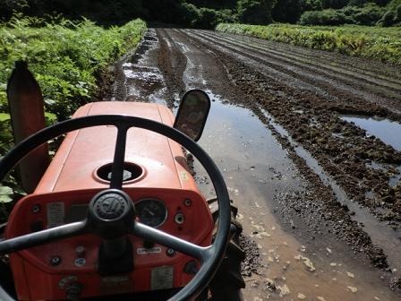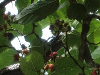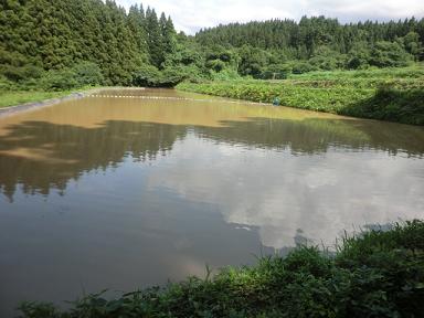 鯉の稚魚を育てるための泥池の準備です。水田の土手を高くして作りました。本来はもっと高く大きくして、水深を確保するようにするのですが、漏水と稚魚と言うのを育て易くするためにまずは此の程度から始めている所です。水が溜まったので、代掻きを始める所です。此の場所は、上の畑のさらに上の所に有ります。このようなものが8面あります。こんな感じに出来ました。NO3稚魚池の末端に保護している山葡萄の様子です。右側のこんもりしているものがそうです。実も大分大きくなってきています。天候が良いので今の所順調なようです。此処の葡萄を見ると、山の自然の物の出来も収穫適期も推察できます。葡萄のついでに山桑の実も一部黒くなってきました。たくさん実が付いたのは良いのですが、今年はカメムシの被害も大きいようです。白くなっているのがその被害果です。今年はカメムシの被害、他の作物も要注意のようです。こんな被害は見たことが無いからです。