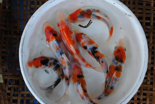 ブログの更新および訪問中々出来ずにいますが、今日はその理由をUPします。鯉の選別作業に追われているからなのですが、この画像は選別の為に網を引いている所のものです。こうして稚魚を集めて不要な鯉と育てる鯉を分ける為に行なうものです。不要になった鯉は産地では穴に埋めることが義務付けられているそうです。此方の画像は、それぞれの特徴を持っている鯉をUPしたものですが、目的は大きくて育て易い丈夫な鯉の産出なので美しさは二の次になるという餞別になります。勿論綺麗な鯉は残して育てますが、この場合の主眼ではないのです。次は来年の親鯉を少しずつ導入しているのですが、この鯉はある有名養鯉場さんの雄鯉です。良さそうに見えますが、雄鯉には使えるかは疑問な鯉です。オスにしては緋が鮮やかなものではないからですが、質が悪いわけでは有りません。柿熟色という今はあまり流行らない感じのもので、雄として如何なのかは分かりません。色揚げ飼料と言うものを与えて育てれば鮮明な緋色に仕上げって来ると思いますが、繁殖用のオスはそういうことをしなくても鮮明な緋質のものでないと理想の親とは言えない所があると言われています。色々有りますが総じて綺麗な良い鯉ですよ。緋盤に重なった墨を本墨と言うそうで、これは黒くて墨の本質は判断できませんが、白地に出ている墨で墨の質を見るのですが、この鯉は白地に出ているものが薄いので今のところ良いとはいえませんが、この親鯉(全国での優勝鯉)は売れ残りの鯉だったと言われていて、こうした墨も段々と濃く良い物になるものと期待しての導入です。この鯉、白地の墨が濃くなってくると、うるさくなるので観賞用としてはこれで良いのかも知れませんが、親としては如何かと言う所だと思って見ています。出来上がった完璧な鯉は価格が数段上がってしまうので、こうした未完成の鯉を買う経済力しかないので、鯉の質と言うより系統に頼らなければいけない我が鯉飼育の現状です。