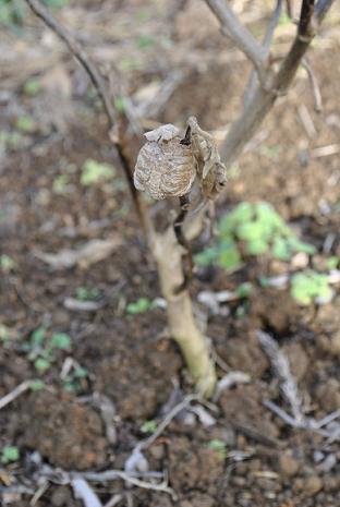 自家用野菜のナスを植えました。ナスの収穫は、水をたっぷりとやっての朝取りが美味しいのだそうです。野菜は鮮度が命、美味しい朝採り野菜の味も楽しみたいと思います。此の写真の奥がコンニャクの畑です。我が家のイチゴです。今朝紅くなっていたので家内と分けて食べましたが、無肥料なのに甘かったののす。?・・・名前は女峰という品種です。一世を風靡したことがある品種で、甘さ重視の今のイチゴと違って酸味も程よくあって、イチゴらしい風味が魅力です。今でも苗は売られているので人気が有るのでしょうね。前の畑に池を掘ったために、此処に避難してきているものなので管理はしていないのですが、不思議なことに、草に呑まれて無肥料状態でも、病気も虫にもやられていないのは不思議です。青森の林檎農家の木村さんも、林檎畑の草は綺麗にしないそうなので、此のあたりが無肥料有機栽培のコツなのでしょうか。プリンセスアイコのシュートというのでしょうか、出てきました。去年せっかく大きく育った薔薇を、防雪対策を怠り枝折れなどを出してしまいましたが、こうして枝を出してくれています。我が家は今年度2回目の花盛りを迎えています。花木は白が中心で、桐の花も咲いていい匂いを漂わせています。池から我が家の方向を見た小道からの撮影です。此の写真は、家の方から池の方向を見ている写真です。エゴとガマズミの花が満開を迎えようとしていて、今日か明日には最高の景色になりそうです。毎日のように紹介していますが、花の変化をお見せしたくてそうしています。花も毎日少しづつ大きくなっていて、今度は白に赤みが差してきます。花は白なのですが、実は赤で、葉も段々と赤みが出てきて、美しい変化をする此の木には赤の色素が強いことがわかります。今の所その気配はありませんが間もなくがらりと模様替えをしてきます。そういう意味からも春から秋までの変化を楽しみ、冬は美しい木肌と整った樹形を楽しむことが出来ます。此の木は一回も鋏を入れたことの無いヤマボウシですが、樹形が乱れていないのがお分かりと思います。昨日の夜に新たに産卵したモリアオガエルの卵隗です。今朝は鳴き声しないので、産卵は終わったのでしょうか。上の池の鯉たちです。早く野池に入れたいのですが、