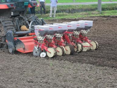 昨日はこんな所に行って来ました。蕎麦の播種機と加工所の視察で見てきた様子です。蕎麦の種を蒔いている状況です。これで一式どのくらいのお金がかかるでしょうか。秋田県西馬内という所に伝わる盆踊りの人形さんです。関が原の合戦時、最上氏から攻撃を受けて没落した小野寺氏の家臣たちが、小野寺氏の供養をしたのが始まりとされている、国の無形文化財にも指定されている由緒ある盆踊りなのです。毎年8月16日から18日まで行なわれているそうです。今盆踊りの衣装はその家に代々伝わっていて中には数百年も経った着物も有るそうです。盆踊り会館という所の様子なのですが、これは其処に張られているポスターです。しなやかに踊る秋田美人の白いうなじの美しさが際立つ盆踊りでも有名です。さくらんぼと言えば山形が有名なのですが、ところがどっこい秋田産のさくらんぼも美味しいのですよ。この農家のさくらんぼはほとんど直販で木で熟させ色も鮮やかな高品質のさくらんぼなのです。私も元農家、見た瞬間にこの家の栽培技術と経営方針が素晴らしいのが見て取れます。奥様も秋田美人の方で少々連日の収穫作業にお疲れの様子でしたが、間もなくお元気を取り戻されて我々に対応をしてくれました。こちらが1キロ入れの箱で3500円というものでしたが、高品質のさくらんぼにしては特価に近いものがあります。箱にも有りますが佐藤錦さんです。痛み易いさくらんぼを美味しく頂くには、長い流通経路は不要です、というか邪魔なだけです。此処のこうしたものの栽培の為の気象条件は私の所には及ばないと自負している私ですが、内陸性の果樹に適している環境の所でも有名です。こちらが我がふるさとを流れる河川です。夏でも冷たいカジカや岩魚の取れる川でこの橋の辺りが岩魚とにじますの生息境界線ですその橋の上から村社の鳥居を撮りました。ふるさとの山です。二千メートル級の山です。この山がクーラーの働きをして夜冷気を里に流すので、日温格差の大きい気象条件はそうは無いと自負する根拠となっています。