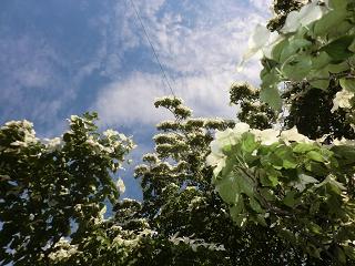 青いアヤメが咲いてきました。何時までも咲かないのでなくなってしまったのかと思っていたのですが、咲いてきたときには嬉しかったです。今日がヤマボウシの一番綺麗な日だと思います。満開のようです。此方がこの間紹介しなかったヤマボウシです。いろんな木に挟まれて池にせり出してきています。少し赤みが差してきていると思いますが、これからもこのように変化をしていくので見ごたえがある木です。横からの写真です。綺麗なので特別サービスです。空も一緒に記念撮影です。エゴノキも満開になりました。満開になったガマズミと別のエゴノキのツーショットです。撮影していると、可愛い蝶が飛んで来ました。今日の追加です。アザミの花が咲きかけて来ています。これも刈らずに保護をしていたら増えて来たものです。今日の最後は、鯉の夕食をやったときに撮影した我が家の夕景です。今日も紅いです。