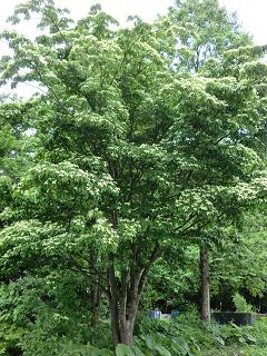 今日は我が家のヤマボウシの紹介です。まずは一本目のヤマボウシです。肥料分をいっぱい与えていた時には、大きな花が咲いていたのですが、今は肥料分を与えない自然の状態なので小さい花をいっぱいに付けています。少し迫力に欠けるので今年度からまた追肥をして、花芽をあまり付けさせないようにしてみます。2本目のヤマボウシです。根巻きのまま長く置いておいたので、成長が今一のものです。これもこの場所で良いのか再検討の必要があるようです。3本目のは、手入れを頼まれた家で庭木の植え直しをして余ったものを頂いてきて植えたものです。すす病で真っ黒になっていたのですが、我が家に来たその年の内にすっかりと回復したものです。何もしなかったのですが通風や日当りが改善されたので自然治癒したものと思われます。特に家が立ち並んで通風の悪い所に込み合って植栽され、尚且つ枝透かしなどの手入れの行き届かない庭では発生率が高くなっているようです。木の精力を回復させる管理が大切なようなのです。このほかにもう一本ありますが、コブシとモミジにはさまれてアップアップしているので今回は紹介しません花を紹介しないでしまったウワズミ桜の実です。地元ではコンゴウザクラと呼んでいます。此の実も小鳥が好きなようで、種が山桜より多く付くのか、山桜の実生と思って採って来ると此の木の場合が多いようです。見分け方あるのでしょうが詳しくは知りません。今日用事があって出かけた町のH・Sで売れ残っていたつる薔薇メダリスト何とかというのを安くゲットして来ました。暫く養生させておけば秋までには大分回復すると思いますが?はて?何処に植えようか悩みます。