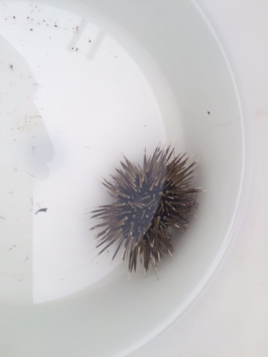 題名のウニですが、ウチの水槽ではライブロックについてきたウニが生息していました。。最初は小指の爪くらいの小さいサイズだったんですが。。。いつの間にか大きくなり、ライブロックを動かすはサンゴを蹴落とすので、土曜日に釣りに行った時に、海にかえしてきました。。結構大きいんですよ。。バケツの底が15cmくらいはあるんで、6~7cmくらいはあったでしょうか??天寿を全うしてくれるといいですね。ちなみに、釣りに行った時に見えた夕焼け~♪釣り目は、この日解禁したてのムギイカ(スルメイカ)だったんですが、惨敗。。。まだちょっと早いようでした・・・ちなみに去年は一緒に乗った釣り仲間の人は、同じ時期に200杯以上釣ってました。。他の船もみな釣れてないようなので、やっぱり早いんでしょうね~。。さてさて・・・新魚の方ですが、とりあえず1週間経って元気そうなんで紹介しておきます。。(スマホで撮ると青くてよくわからないですね。。)スノーフレークの2匹です。1匹がギフトからで、もう1匹はチャー便でやってきました。狭いリフジュームの中なんでケンカしないか心配しましたが、1日だけトリタンで様子を見て、大きいケンカはしないので、即投入しました。。ハタゴが居るのに2匹とも入りません(笑)流石ブリード。。。前に居たスノーフレークは、今のカクレのメスが居たせいか?その場で入ったんですけどね~。。まぁハタゴが小さいんで入らない方がイソギンチャク的には楽なのでしょうが(笑)まぁデカい方が小さい方を威嚇はしますが、小さい方も負けん気は強いようなんで、その内ペアにでもなってくれたらいいですが、あまり期待しないでおきますさて、カクレのチビ達ですが、第5弾のハッチが行われる予定だったので、第2弾と第3弾をまとめることにしました。。纏めて30cm水槽にお引っ越しです。投げ込み式フィルター入れて、水替えの手間を少しだけ伸ばすことに。。。ちなみに第4弾は結構大きくなりました!そろそろ2週間かな?白いラインが出てきてるのも居ますが、逆にまだ棒切れのようなのも居ます。。こういう成長の違いで、自然界では生き残れるか残れないかが違うんでしょうね。。ちなみに、予定では第5弾は昨日の夜の予定でしたが、昨日の夜は第3弾と同じように数匹ハッチしただけでした。。右の黒い細長いのがそうなんですが。。見えないですね。。恐らく今日の夜が本格的なんだとは思いますが・・・また失敗?というか早く出ちゃうかもしれないので、とりあえず数匹でも確保はしておきました。。今日帰宅しても卵が残ってれば、もう少し採れそうですね~。そうそう・・・。第6弾は決定のようです。。。
