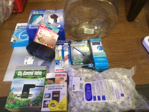 え~よくわからん題名になってますが(笑)去年~今年の年末年始、大掃除もあらかた?適当?に終わった31日に、頼んでいた塩が届かないという事態になり、しょうがないのでチャームへ行ってきたんです。。チャームでは、ちょうどこの日から店舗でアウトレットセールなるものをしているようで、ちょうどいいかなぁ~と思って。。ついでに天然海水も買ってこられますしね~。そして、ついてビックリ?アウトレットが激安で売ってるじゃないですか!しかも・・・多少汚れたりパッケージが潰れてたりするだけで・・・この値段!?的な。。ネットで注文しておいた塩と、天然海水を買った後、アウトレット品の物色にかなりいそしんで。。。これだけ買ってきました(笑)金魚用のドラム水槽に、冷却ファンとサーモのセット、テトラのICヒーター、バクテリアのB4、自動餌やり機や濾材等含め。。13点(笑)他にもほしいものがいっぱいありましたが。。他のお客さんの分も・・・とか思ったりして、これだけにしておきました(笑)これ~全部でいくらだと思いますか??普通の値段で買ったとしたら、2万くらいはするはずなんですが。。。なんと。。。1500円です他にも、アクアシステムのマルチフィルターが1000円とか・・・これは悩みましたね~。。オールインワン(UVもついてる)のフィルターですが、普通なら4万近くするものですからね。。。でも特につける水槽が・・・なんて思ってたら、買われていきました・・。まぁそうですよね~。その他にジュンコーポレーションのスレンダーOF水槽が1000円とか、クロミスの60OFの水槽だけですが、4万くらいするのが、3000円とか(笑)何がアウトレットなのか?まぁ汚れてるから??よくわからないけど・・・使う分には全く支障がないレベルのものがありえない値段で相当数でてました。。。そして迎えた正月。。。福袋ならぬ福魚?を求めて、午後からライズ・・・ほしい魚が居ましたが・・・我慢??(笑) ⇒ またまたチャーム(笑) アウトレットのめぼしいものはやはり売切れてて、福袋も売れ切れててなかったですね~。 ⇒ そして 最後にベッセル。。。ここで、10%OFFなのをいい事に??とある魚を購入。。。ちょっと痩せてるからB級扱いだったんですが、なんとなく餌は食べてるのを見せてもらったんで、思い切って!?購入しましたが・・・やはり痩せている魚は難しいですね。餌は食べてましたが、やはり環境変化で食べなくなってしまい。。。3日で☆に・・・。これで年越し袋の得感が0になったのは言うまでもありません(笑)まぁでもいい勉強にはなったんでよかったかなぁ~。。ちなみに、魚はインドニシキです(笑)そして、白点を患っていたトゲですが、一時よくなって餌食いも戻ったのに?何故か急変しまして。。こちらも年始早々☆に。。。終わりよかったが・・・始まりはイケてない年初めとなってしまいました。。。魚は追加するなという掲示かなぁ~なんておもいっつ・・・12日まで10%OFFなんですよね。。。どうしましょう(笑)