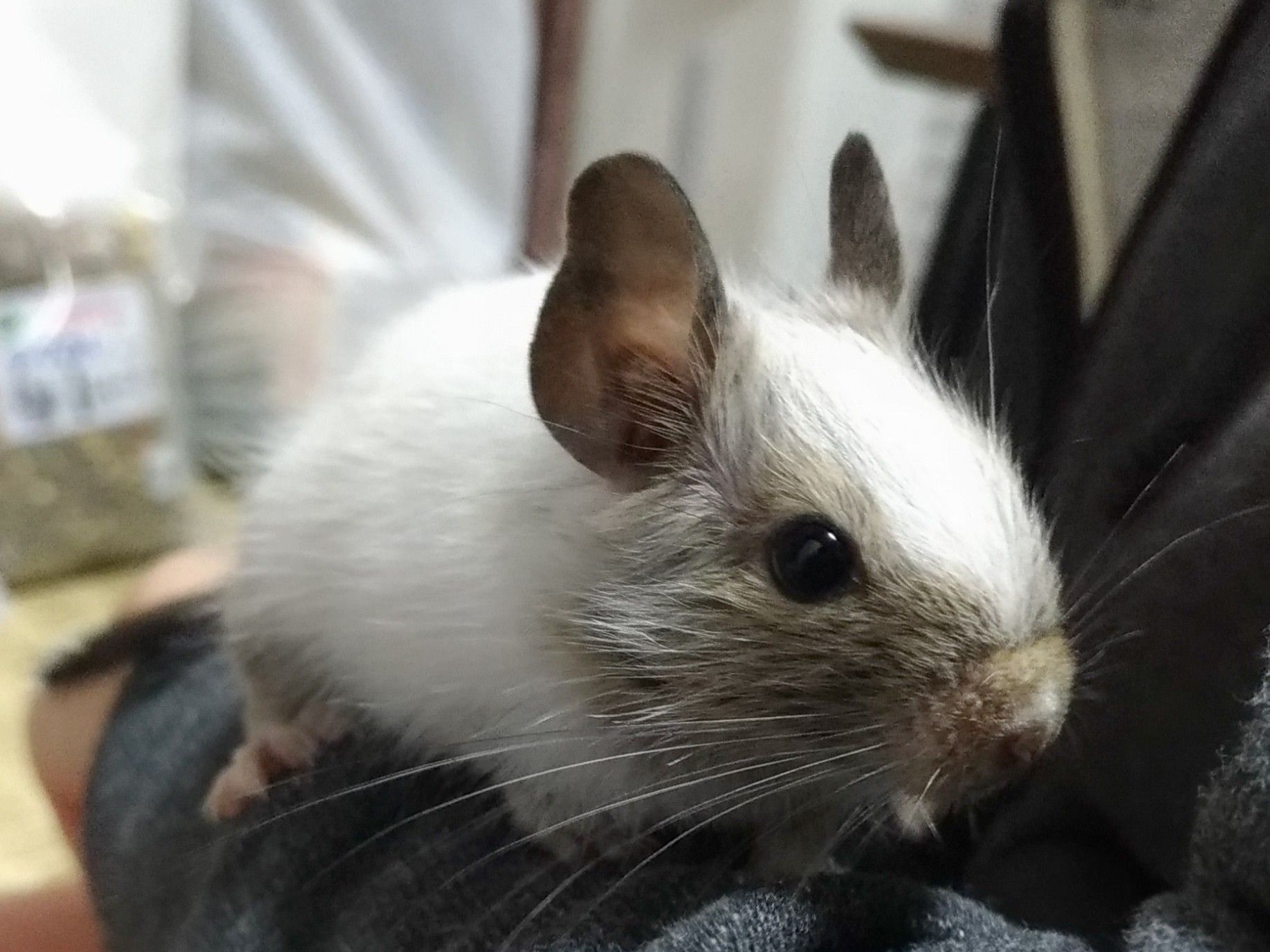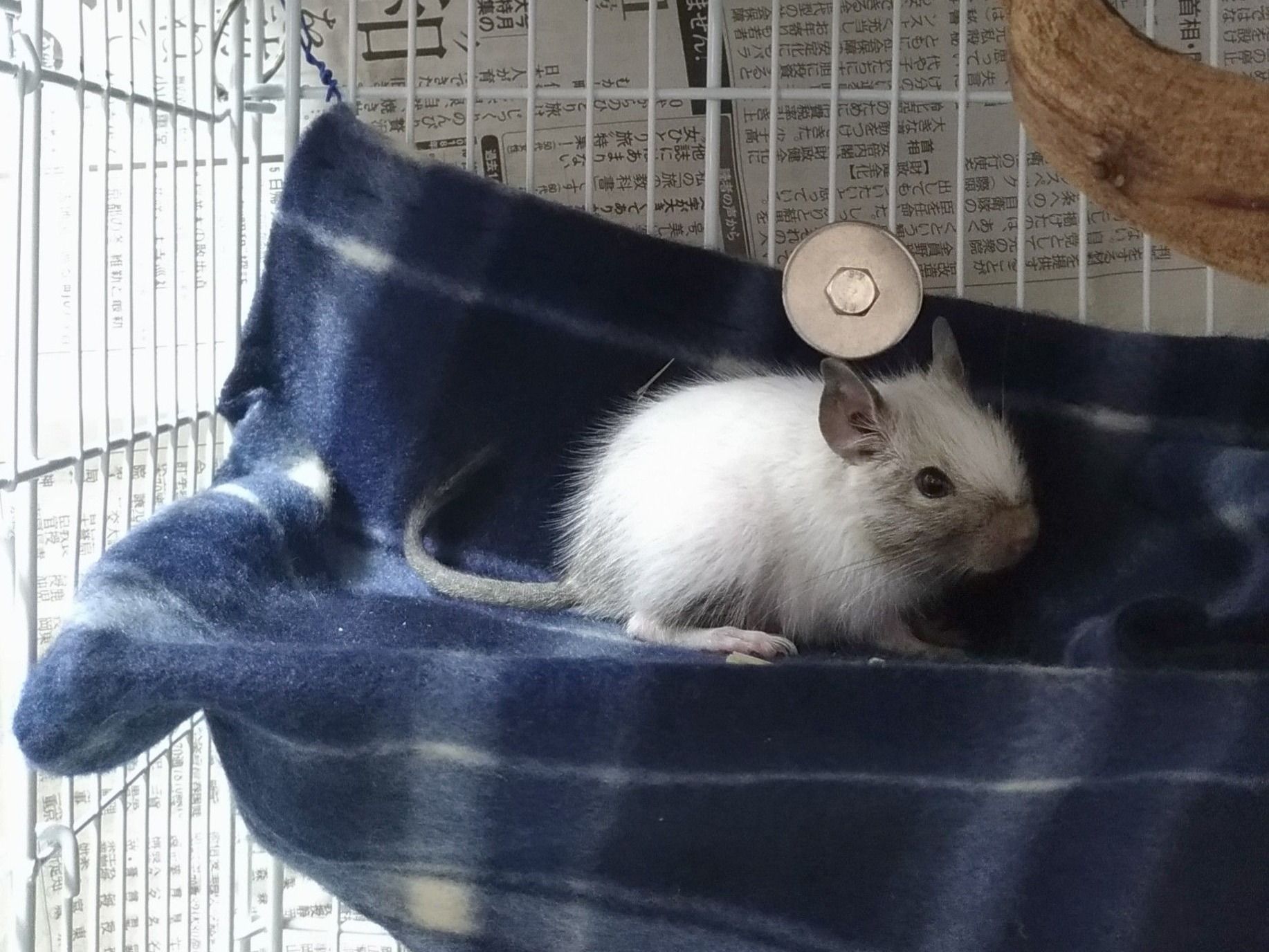 みぞれ模様 ~2日目~我が家へやってきて2日目の朝ケージを齧ったり回し車で遊んだりみごれの元気な音で起床おはよう、みぞれみぞれが来る前休日は大体10時過ぎに起きる事が多かったのでまだ眠いよ、みぞれお嬢さん。。昨晩名前が決まらないまま就寝してしまいましたが名前を呼べないもどかしさがあり朝っぱらから寝ぼけた頭で考えました食べ物の名前花の名前が案としては多かったですが「みぞれ」に決まりました見た目が白いのと嫁が以前飼っていたデグーで「あられ」がいたので、それ繋がりで思いつきましたちなみに僕はあられと面識はなくしかも「霰」ではなく某漫画?アニメ?のアラレちゃんからとったとの事。。みぞれという名前ですがやっぱり寒さには弱いようでケージの下に敷いたパネルヒーターの上から動かなくなってしまいました調べてみたところ、寒いときは●一定の場所で動かなくなる●ヒーターから離れなくなる●毛がボサボサになる などの症状が見られるようでみぞれもそれに丸っきり当てはまってました。。急いで押し入れからガスヒーターを持ち出し室温を25℃以上にしてあげ少しすると外に出てきたので安心しましたこれからもっと冷え込みますし平日はお留守番の時間が長いので寒さ対策はしっかり考えないといけませんね暖かくなってからは元気にケージの中を走り回り(しかもめっちゃ機敏)ご飯も食べる食べる昨日はペレットとおやつ、チモシーは穂だけしか食べなかったけど今日はチモシーの柔らかい葉っぱ部分を好んで食べてました歯がまだ白いのでチモシー食べてくれると嬉しいですねそして最後にTwitterとかYouTubeで見たことのある、あれ顎とか脇の下撫でると気持ちよさそうにするやつみぞれもさせてくれました二日目でこんなスキンシップとっちゃっていいのかしらという若干の不安もありましたがあの気持ちよさそうな顔を見るとこっちも癒されますねほんとうちの子、天使笑さて明日はいよいよみぞれ初めてのお留守番主は仕事が手に着かない気しかしないです元々残業はほぼないのですが定時になったら即退社して帰ってこようと思いますそれではまた明日
