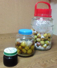 先週末、祖母を田舎に送り届けた。そのついでに、梅を収穫した。見た目は綺麗ではないけど、完全無農薬二日かけて30kgは採っただろうなぁ~今日その梅がやっと加工されました。左手前から梅ジャム梅のはちみつ漬け(予定)梅核エキス(予定)梅ジャムは初めてにしては上出来梅のはちみつ漬けは1ヶ月~2ヶ月後梅核エキスは3ヶ月後が、完成予定となってます。それまでに、失敗って事も大いにありえるので今から3ヶ月間、ドキドキなんで、そんなに思い入れがあるか?だって、収穫から携わったもんですから・・・おかげで、肩パンパン!整骨院の先生もビックリやわ~